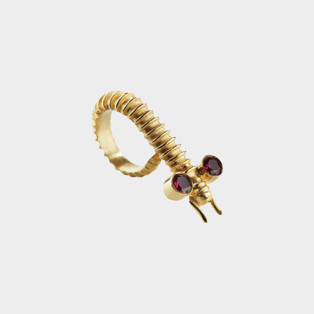 Anel Bug em prata banhada a ouro amarelo e rubis, € 459, Leonor Silva.