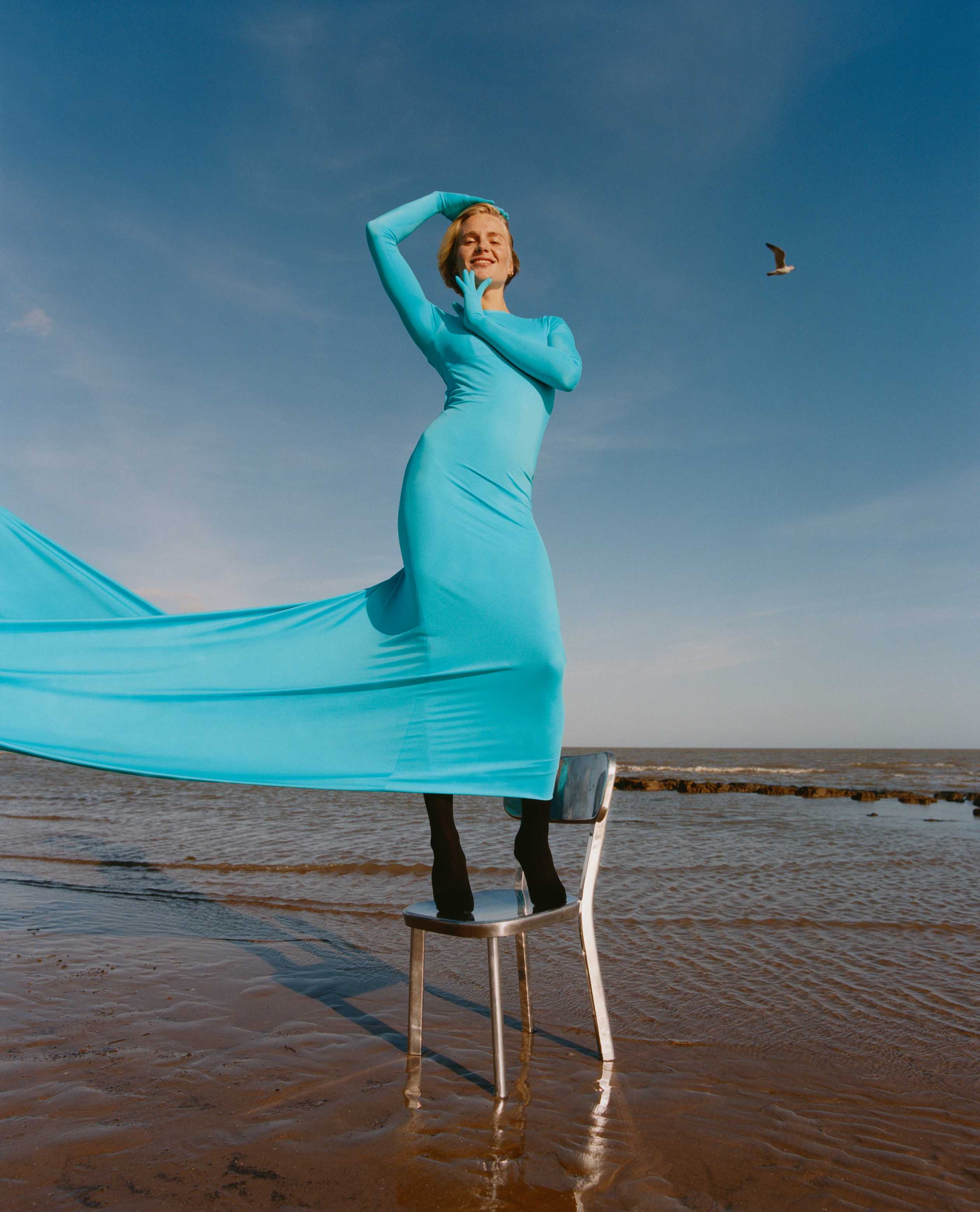 Casaco e vestido, ambos MOLLY GODDARD. Botas, 1 MONCLER JW ANDERSON.