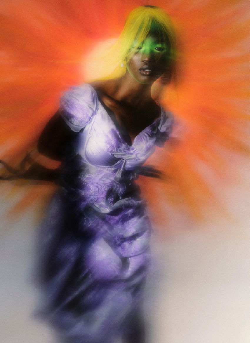 Abény Nhial fotografada por Max vom Hofe com styling de Kingsley Tao, cabelos de Moe Mukai e maquilhagem de Lynski.