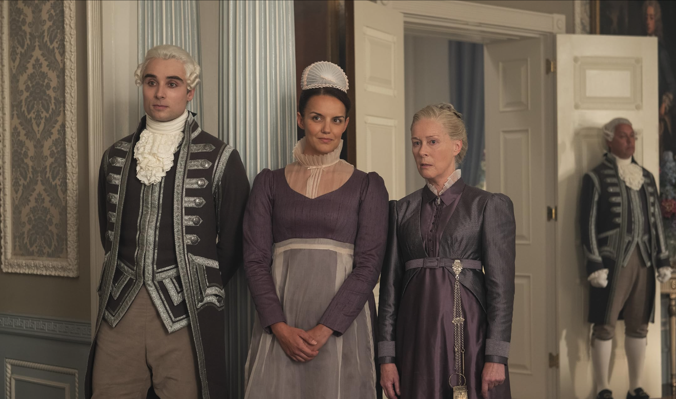 Ao criar os looks das debutantes, Collins concentrou-se igualmente naquilo que melhor se enquadrava na época. "Estamos sempre a tentar respeitar o período; os rosas, os tons de blush, todas essas cores que estavam na Moda na altura", explica. "E é também a estação do romance. É como se tudo fosse um pouco mais suave, em tons pastel e delicados." Mas, no caso de Sophie, foi também necessário ter em conta o seu contexto de criada e a forma como se prepararia à pressa, com recursos mínimos. "O visual da Sophie tinha mais a ver com a sua personagem, com as circunstâncias e com a maneira como ela teria conseguido aquele look naquele momento”, afirma.