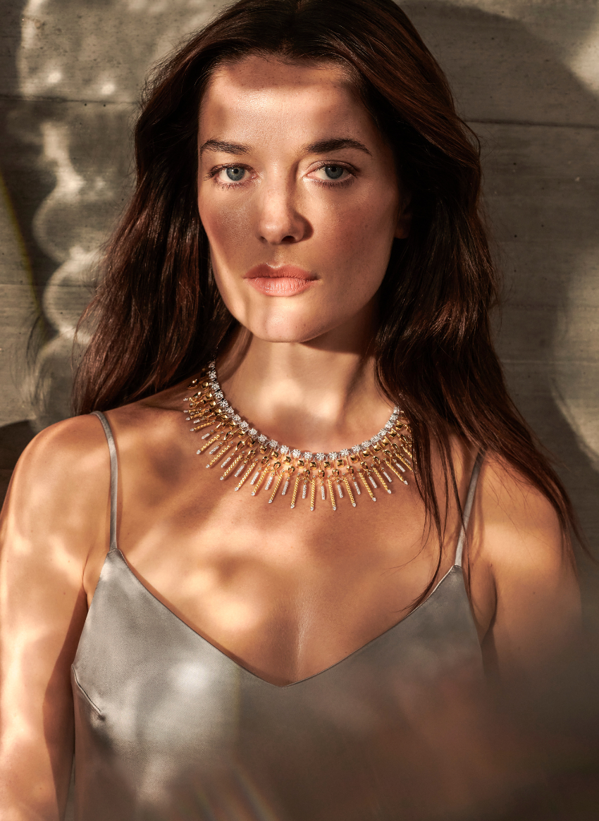 Colar em ouro amarelo com diamantes, € 1.990; escrava em ouro amarelo com diamantes, € 4.260.