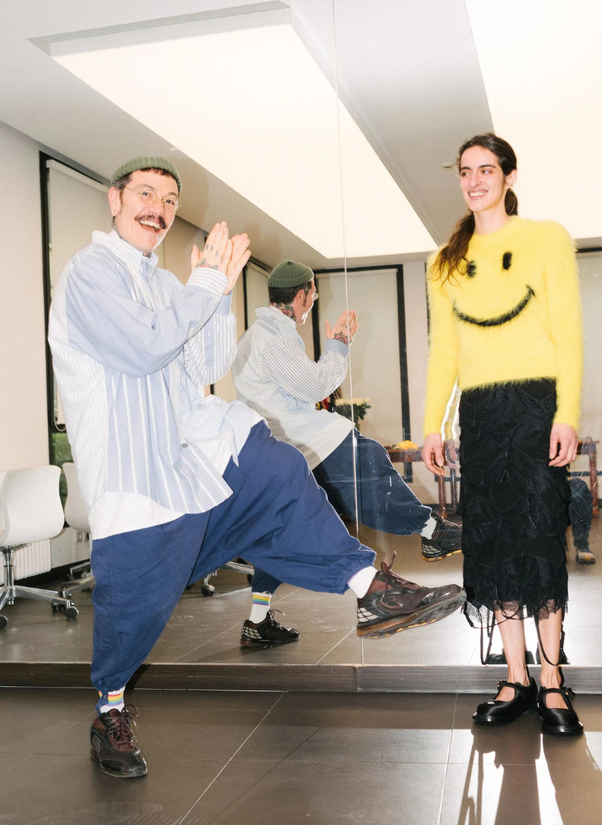 Estes prazos apertados são a razão pela qual, quando nos encontrámos oito dias antes da estreia, Appiolaza ainda não tinha visto a coleção com os seus próprios olhos. "Quero fazer algo que respeite a situação", diz ele, "por isso trabalhei com a equipa de design para criar as peças. Organizámos tudo para ser feito com tecidos que já estavam na empresa e prontos a usar. Depois, no sábado, vão chegar e começamos alguns dias de testes: vestir as modelos e criar estas personagens que tenho na cabeça. Mas tudo ainda tem de ser trabalhado e testado".