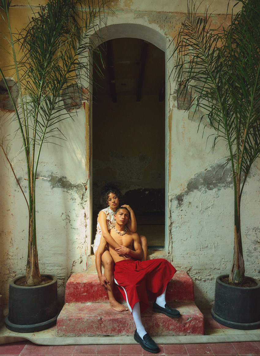 Eli: vestido, SENTIMIENTO. Aldo: camisa, SÁNCHEZ-KANE. Bodysuit, da produção.