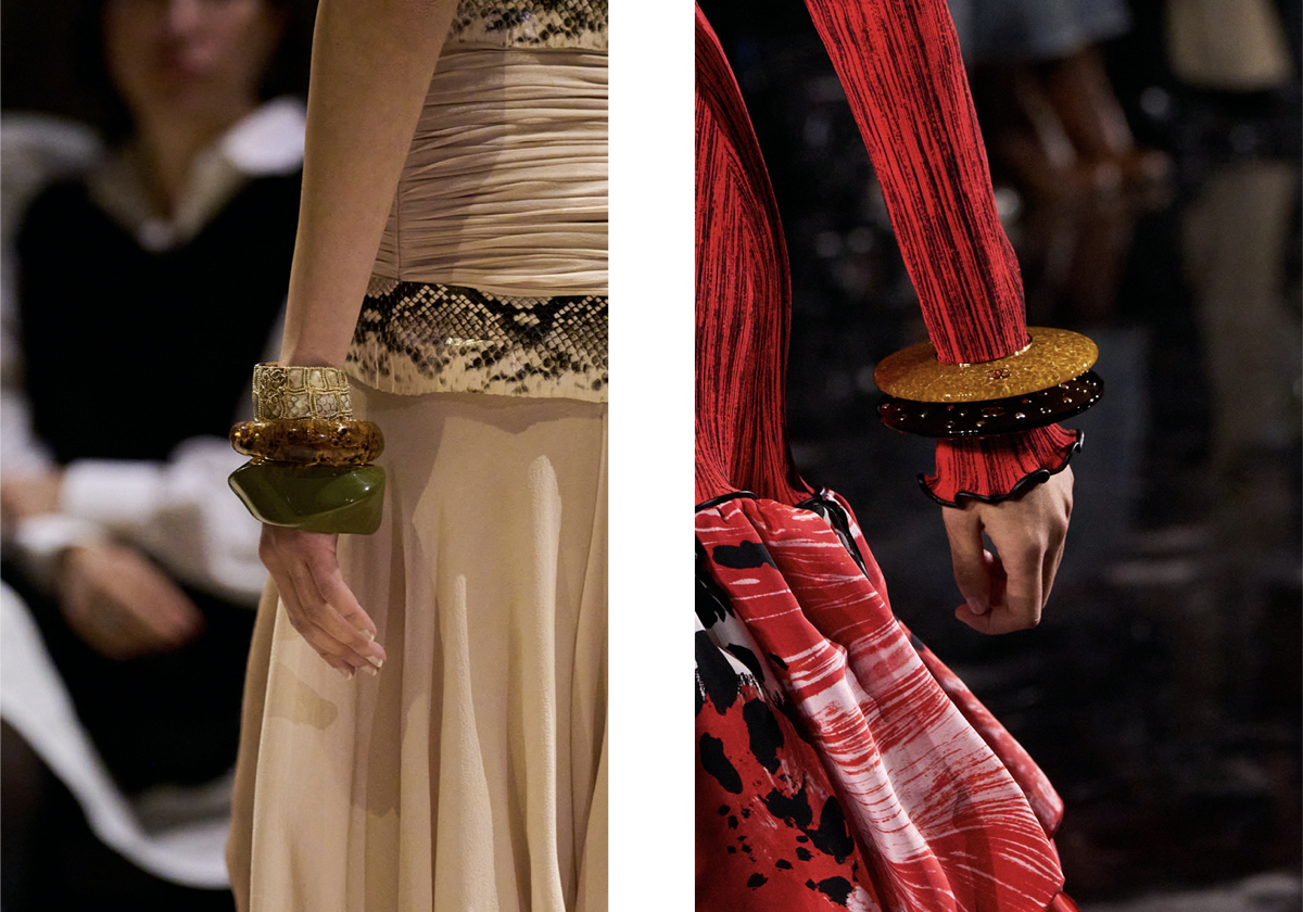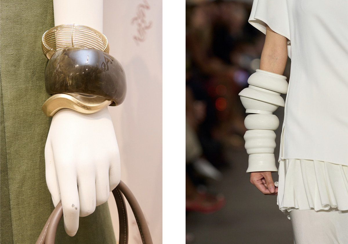 Nesta primavera/verão, o maximalismo está de volta ao leme do reino dos acessórios. As pulseiras usam-se sobrepostas e empilhadas, num jogo eclético que equilibra cores e volumes. As conjugações são infinitas, e as derradeiras inspirações chegam-nos diretamente das coleções de Elie Saab, Chanel e Marina Rinaldi.