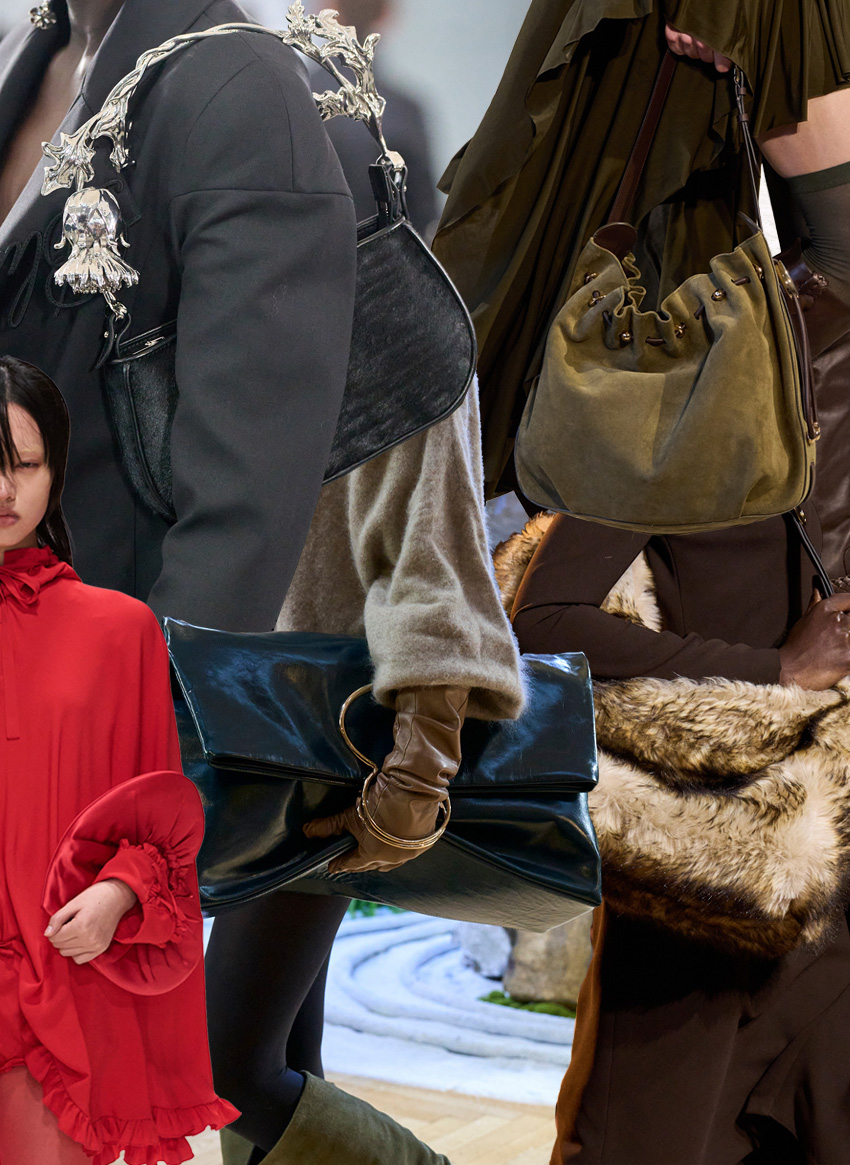 Nesta estação, no que a carteiras diz respeito, o foco está nas alças. Que o digam Erdem, Blumarine e Kiko Kostadinov, que apresentam propostas que contam histórias através dos seus acessórios. Entre alças repletas de charms e diferentes tonalidades de hardware, neste outono/inverno, as carteiras querem-se infinitamente mais cool e capazes de elevar até os mais simples looks.