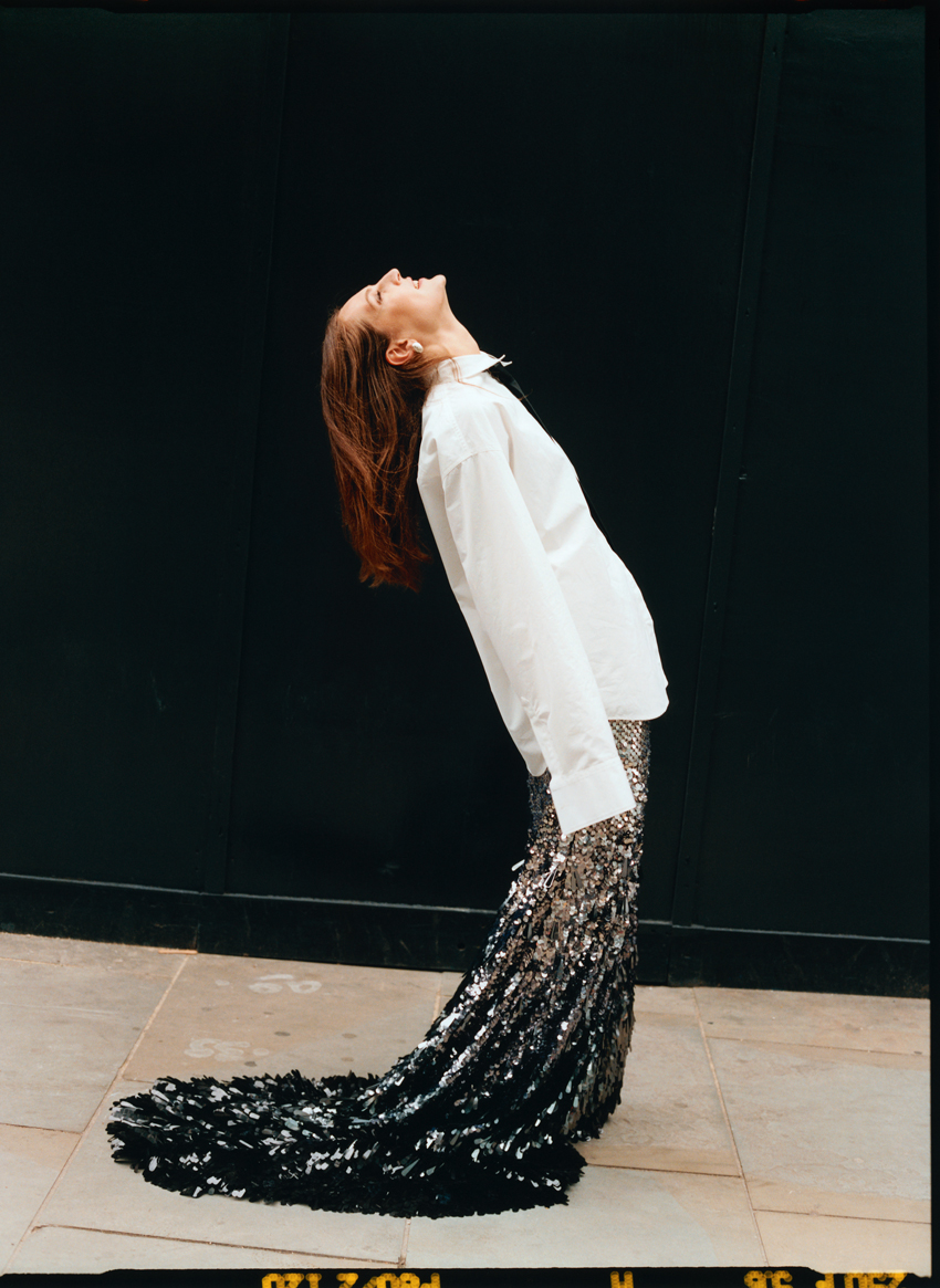 Vestido, MOLLY GODDARD. Ténis, BALENCIAGA.