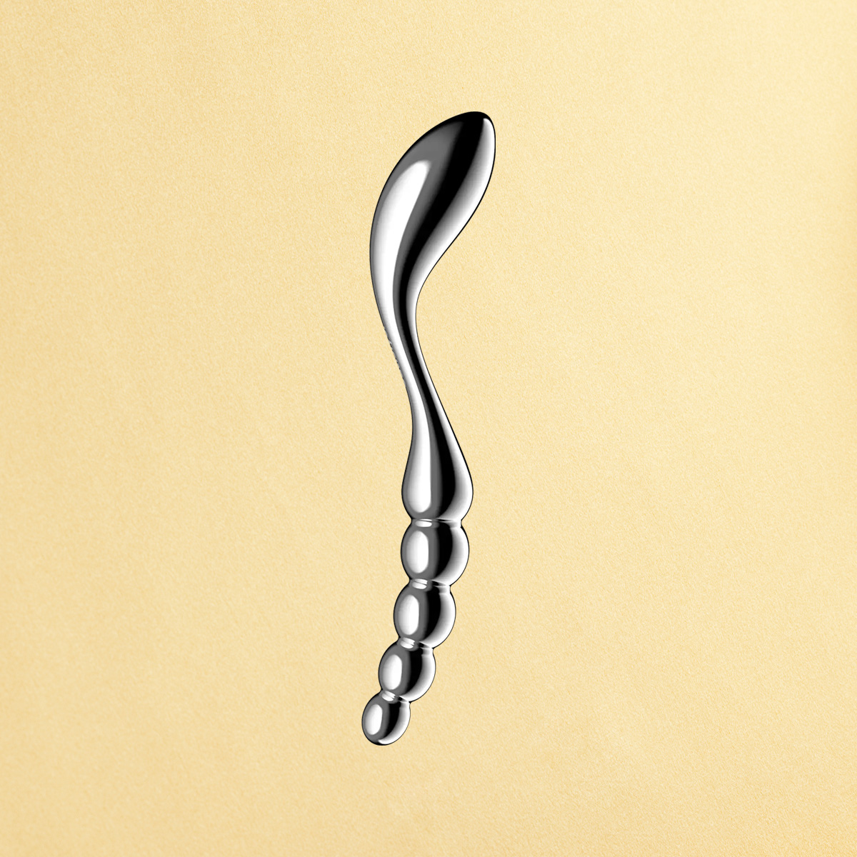 Com uma curva em S fluida e um jogo de texturas contrastantes, o sex toy Star Force 1 distingue-se por oferecer duas sensações num único formato: uma superfície lisa que desliza sem resistência e uma extremidade com relevo que acrescenta ritmo e profundidade. Em aço inoxidável, foi pensado para alcançar o ponto G com precisão, permitindo estímulos intensos. A capacidade térmica do aço abre espaço a variações de temperatura, acrescentando dimensão e versatilidade à experiência.