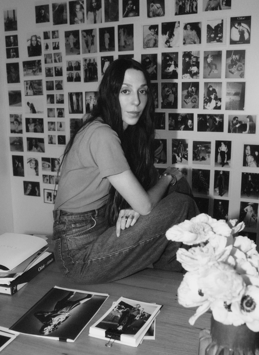 Ainda é muito abstrato. A sério, honestamente, ainda não pensei muito nisso. Talvez seja um pouco do género: "Oh, vamos falar disso mais tarde", porque sinto que tenho estado tão ocupada com a chegada aqui, a reestruturação de tudo, a trabalhar para lançar uma pré-coleção, a trabalhar numa exposição dentro de duas semanas. Tenho estado tão ocupada que esta pergunta tem sido um pouco afastada na minha mente - mas desde estagiária até diretora criativa, adorei cada passo do caminho. E podem perguntar a todos os que trabalharam comigo sobre isto, mas sempre fui muito aberta sobre o meu amor pela Chloé - sempre disse o quanto adorava a marca e a sua história.