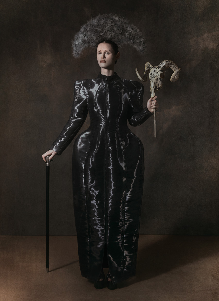 Teti: casaco e vestido, DOLCE & GABBANA. Headpiece, GIOVANNI IOVINO.