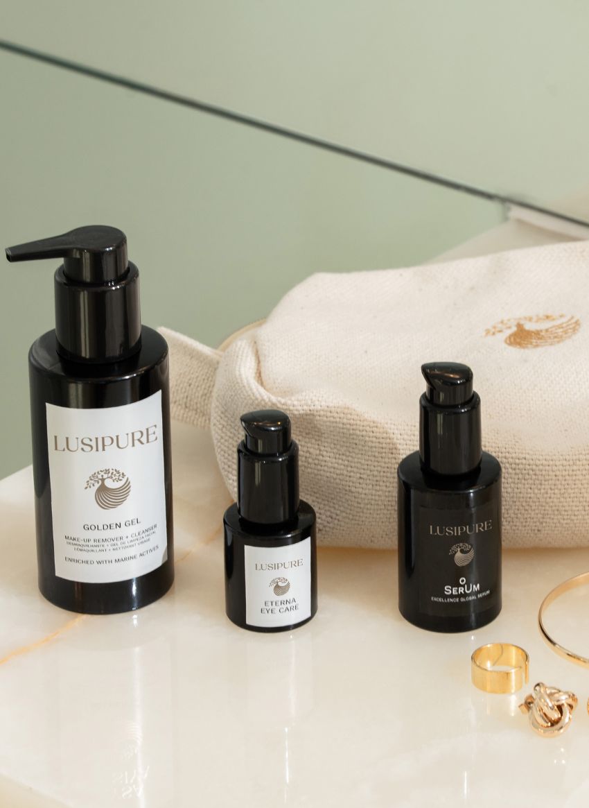 A Lusipure nasceu precisamente dessa reflexão. Queríamos desenvolver uma marca ligada a Portugal, que valorizasse as matérias-primas naturais do território e que apresentasse uma visão própria da cosmética. A ideia era destacar ingredientes portugueses com um ângulo diferente, não apenas numa lógica de cosmética natural, mas também através de uma verdadeira expressão de luxo português. Portugal possui matérias-primas extraordinárias, tanto na terra como no oceano, que ainda são pouco exploradas na cosmética premium. Ao mesmo tempo, França continua a ser uma referência mundial em investigação e formulação cosmética. A Lusipure nasceu dessa combinação: natureza portuguesa, ciência cosmética francesa e uma estética que procura expressar um certo luxo português (elegante, discreto e autêntico).