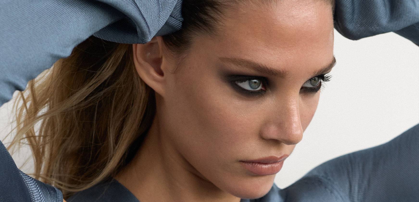Highlighter Reflect Highlighter, no tom Pearl, € 46; lápis de contorno Contour Stylus, no tom Travertine, € 40; lápis de sobrancelha Babyblade, no tom Medium Brown, € 37; gel de sobrancelhas Featherfix, no tom Medium Brunette, € 35; eyeliner Satin Kajal, no tom Black, € 34; sombras de olhos Smoky Eye Brick, no tom Tuxedo, € 66; lápis de lábios Lip Definer, no tom No. 02; e batom Posh, no tom Girl, € 44, tudo VICTORIA BECKHAM BEAUTY.