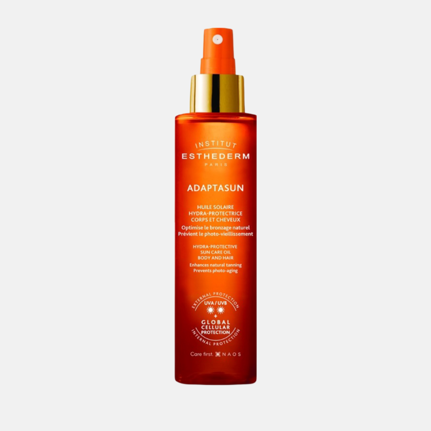 O Adaptasun Sun Care Oil foi criado para proteger corpo e cabelo dos raios UV, ao mesmo tempo que previne a secura excessiva e o envelhecimento prematuro. Com uma textura seca e de absorção rápida, este óleo solar não deixa resíduos nem oleosidade, apenas brilho, nutrição e um toque sedoso nos fios expostos ao sol.