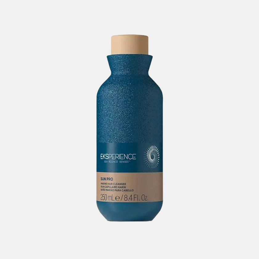Depois de um mergulho ou de um dia a apanhar sol, o Eksperience SUN PRO Marine Hair Cleanser é o primeiro passo para devolver equilíbrio ao cabelo. Formulado com o Aquamaris Complex e óleos nutritivos de jojoba, girassol e coco, este cleanser remove suavemente o sal, o cloro e outros resíduos, enquanto hidrata e remineraliza o couro cabeludo. Um detox marinho que deixa o cabelo limpo, leve e pronto para o próximo mergulho.