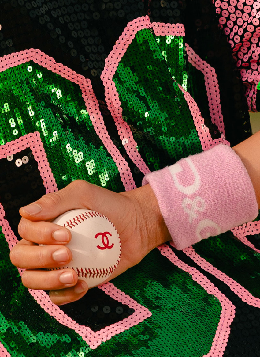 Casaco, REEBOK X 49ERS. Saia, CELINE. Gorro, LANVIN. Ténis, CHANEL.
