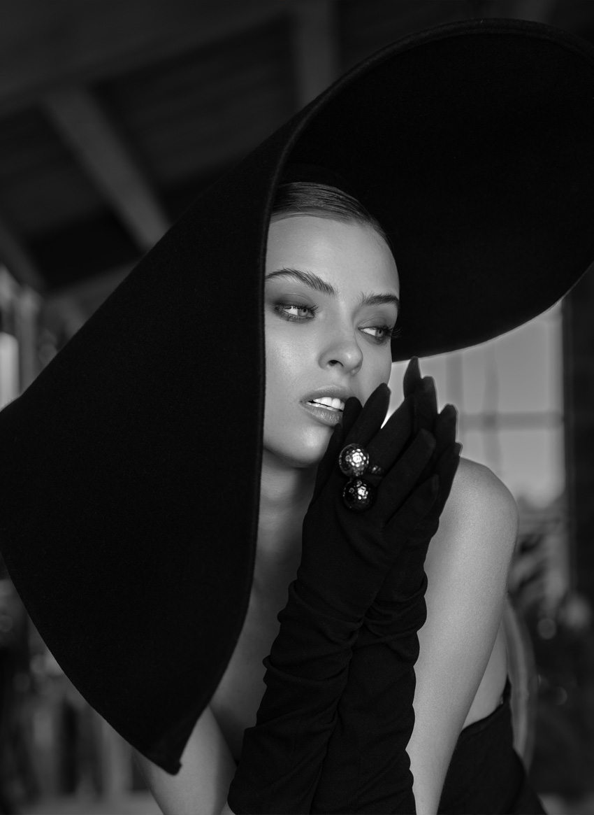 Top, MAGDA BUTRYM. Chapéu, LIA GUREEVA. Luvas, VIVIENNE WESTWOOD. Anel, RL JEWEL.