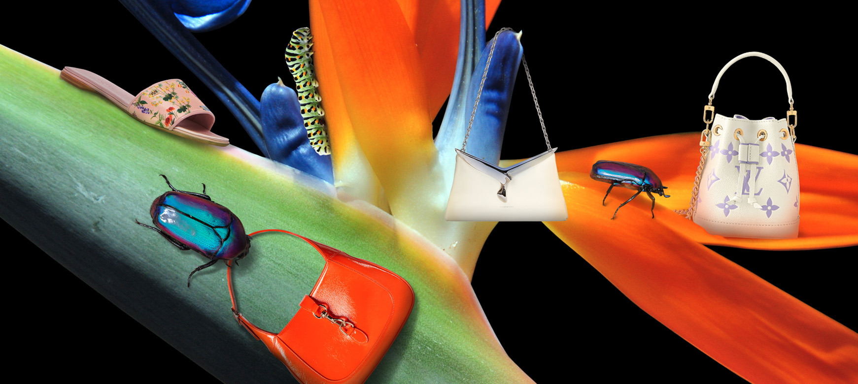 Hidden among the flowers, as if they were tiny insects, impossible to see with the naked eye. Camouflaged among the petals and leaves, in a thousand and one colors, as if they were making this sunny space their shop window. The accessories for this spring/summer have fled the shops and taken refuge in the most unexpected place in the city: the botanical garden.