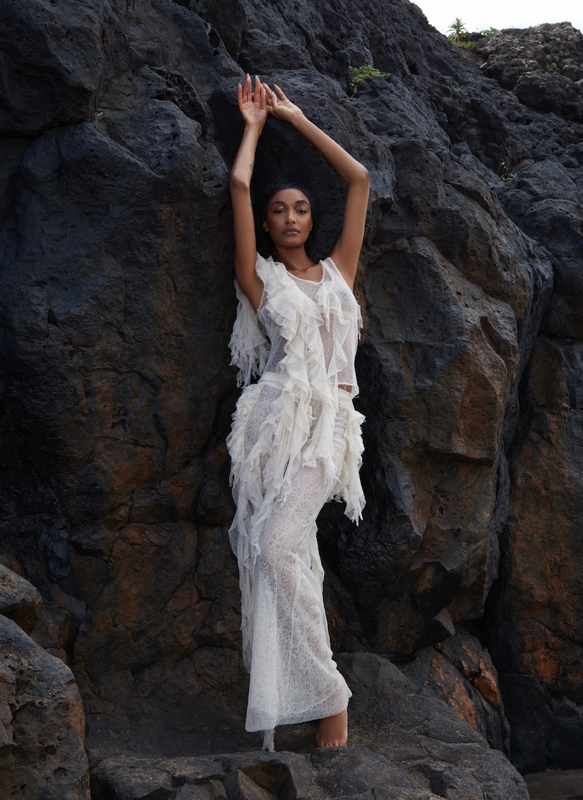 From sea to mountains, from navy blue to earthy tones, the desire to commune with nature is particularly palpable on the island, which is also considered the pearl of the Atlantic. In the pages that follow, we will not all be Dora, though we will all be the iconic Jourdan Dunn, who serves as a guide – tourist and style – on this Madeiran tour.