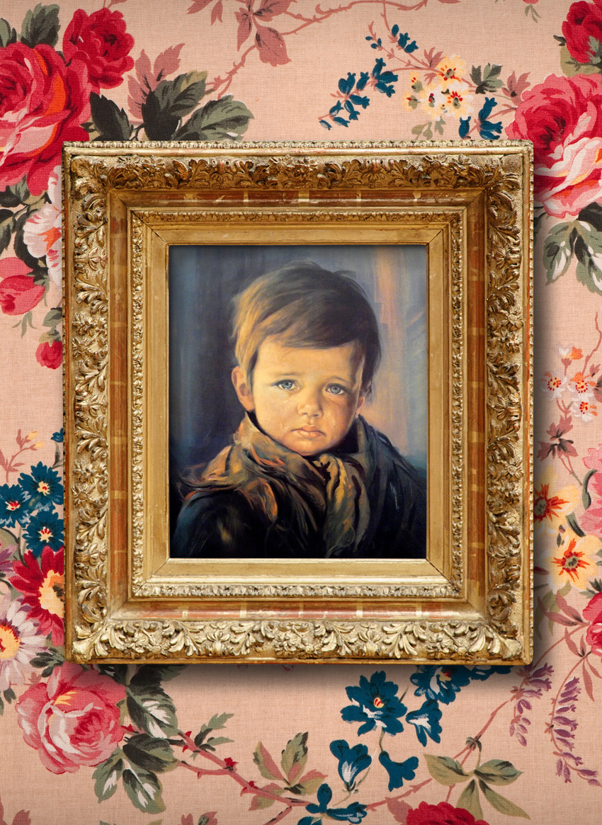 There are at least fifty versions, but there are twenty-seven originals. O Menino da Lágrima (The Boy with the Tear) is a mass phenomenon that struck Portugal in the 70s and 80s of the last century, when almost every home had a replica of the famous painting of the crying boy. Nobody really knows how to explain the phenomenon (who was the first to buy this piece? Who said it was "cute"? Who advised entire families to have the same painting?), the truth is that it was difficult to enter a home and not come across the work of Giovanni Bragolin (or Bruno Amadio, or Franchot Seville, or Bragolin or J. Bragolin). Legend has it that the Italian came across a child, Don Bonillo, whose family had died in a fire, and was so bothered by his sadness that he decided to take him into his studio. He was happy, life was going well for him. But the parish priest soon advised him to get rid of the kid, as he carried bad luck with him - he was even called El Diablo. The painter ignored the warnings. Then one day his studio burnt down from top to bottom. People pointed the finger at the boy. Bragolin lost his head and, in the midst of the hysteria, followed the opinion of the herd. Frightened, the boy ran away and no one ever saw him again. Rumors began to spread that his curse had passed on to the artist, who was no longer able to sell his works. This is the less macabre explanation. The other, offered by Bragolin himself, is that the Crying Boys series was the result of a successful pact he made with the devil in order to achieve instant success and fame. Whatever its origin, O Menino da Lágrima (The Boy with the Tear) was the icon of a generation (it sounds terrible but it's true), the symbol of an era that is no longer coming back - nobody really knew why they had it in their house, and it didn't matter. After all, nobody was going to comment "why did you choose that for the office?" on our Instagram story because there was no Instagram, and nobody questioned other people's choices. Decoration was a matter of taste, not reason, and O Menino da Lágrima (The Boy with the Tear) was the closest thing there was to the melancholy caused by years and years of dictatorship, a kind of pain shared by everyone but never discussed. It was a memento mori of everything that had ended and everything that was about to begin. Of course, this bothered the elites who were the defenders of (good) taste and sophistication, who began to see it, and anything kitsch, as having a pejorative connotation.