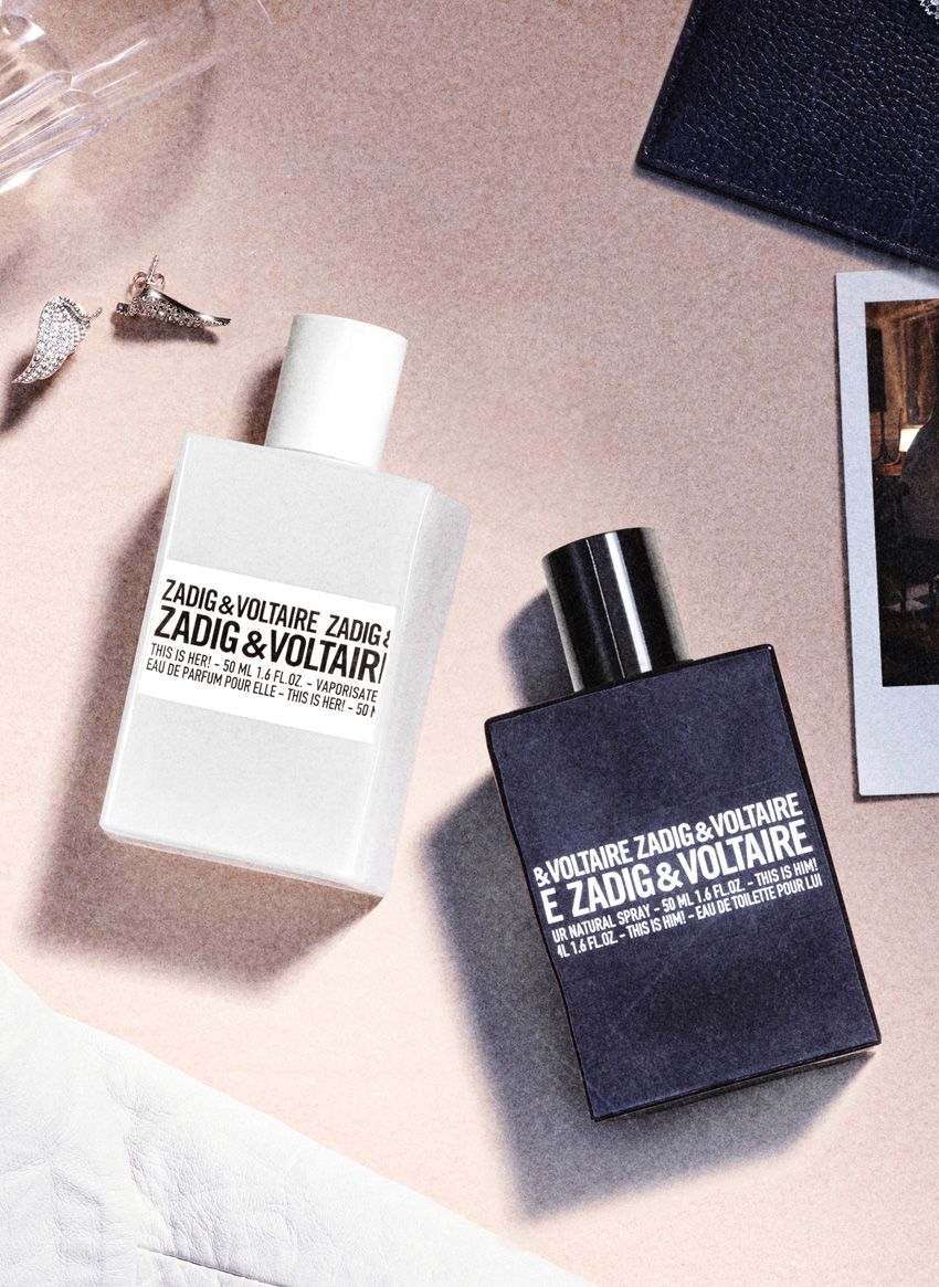 True to its restless and daring spirit, Zadig & Voltaire launched a fragrance duo in 2016 that acts as its sensory alter-ego. This Is Her! and This Is Him!, now icons of modern perfumery, are the perfect duo to counteract the first days of autumn.