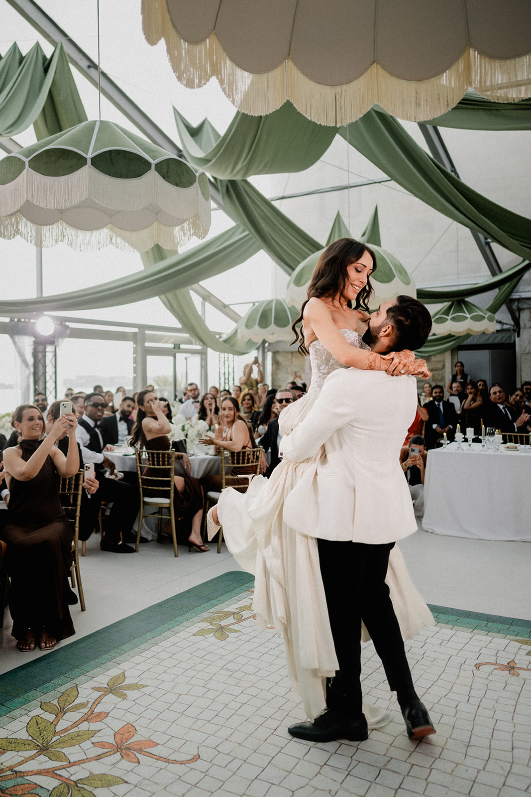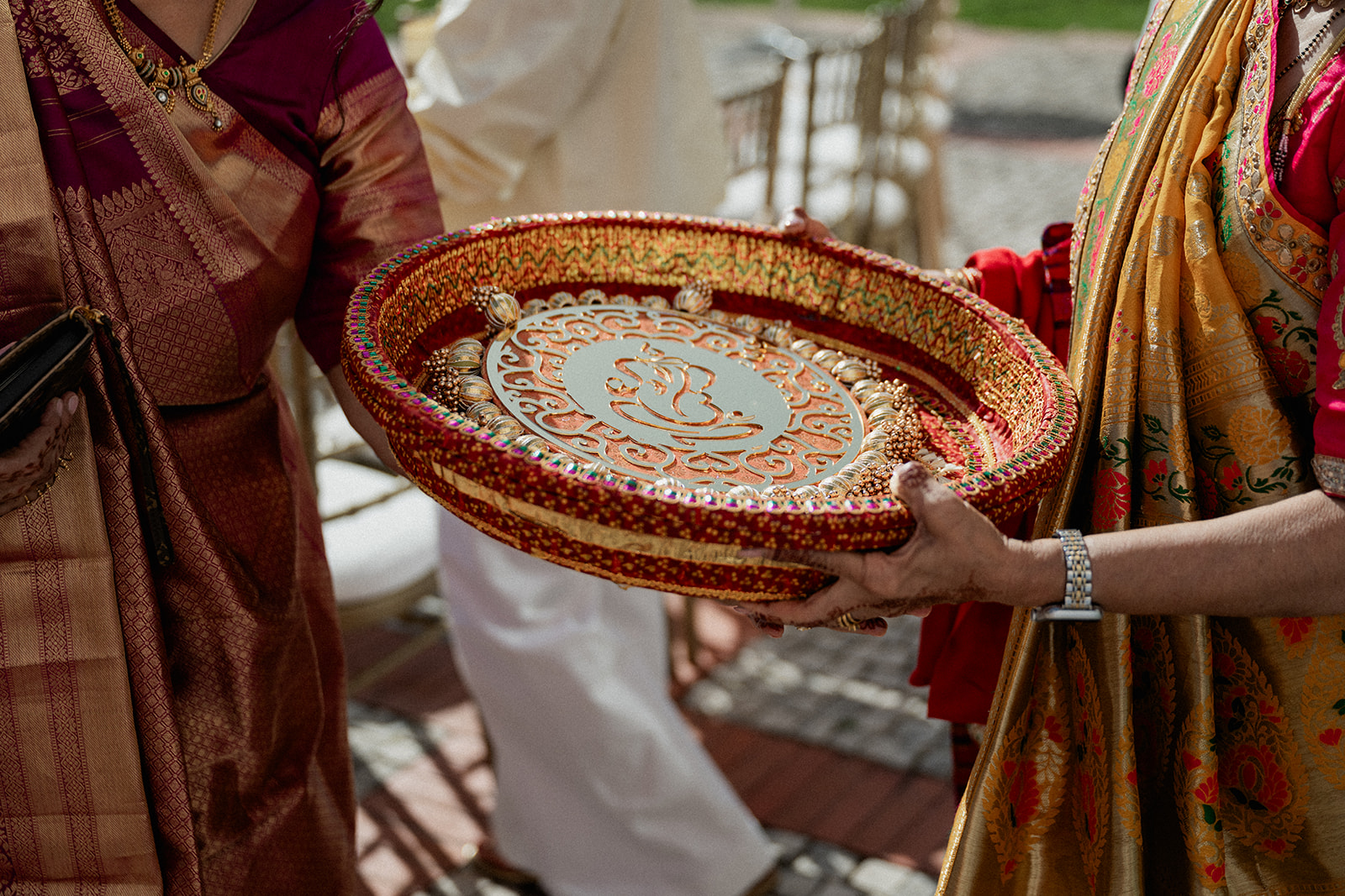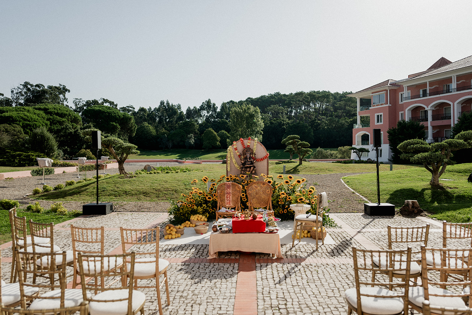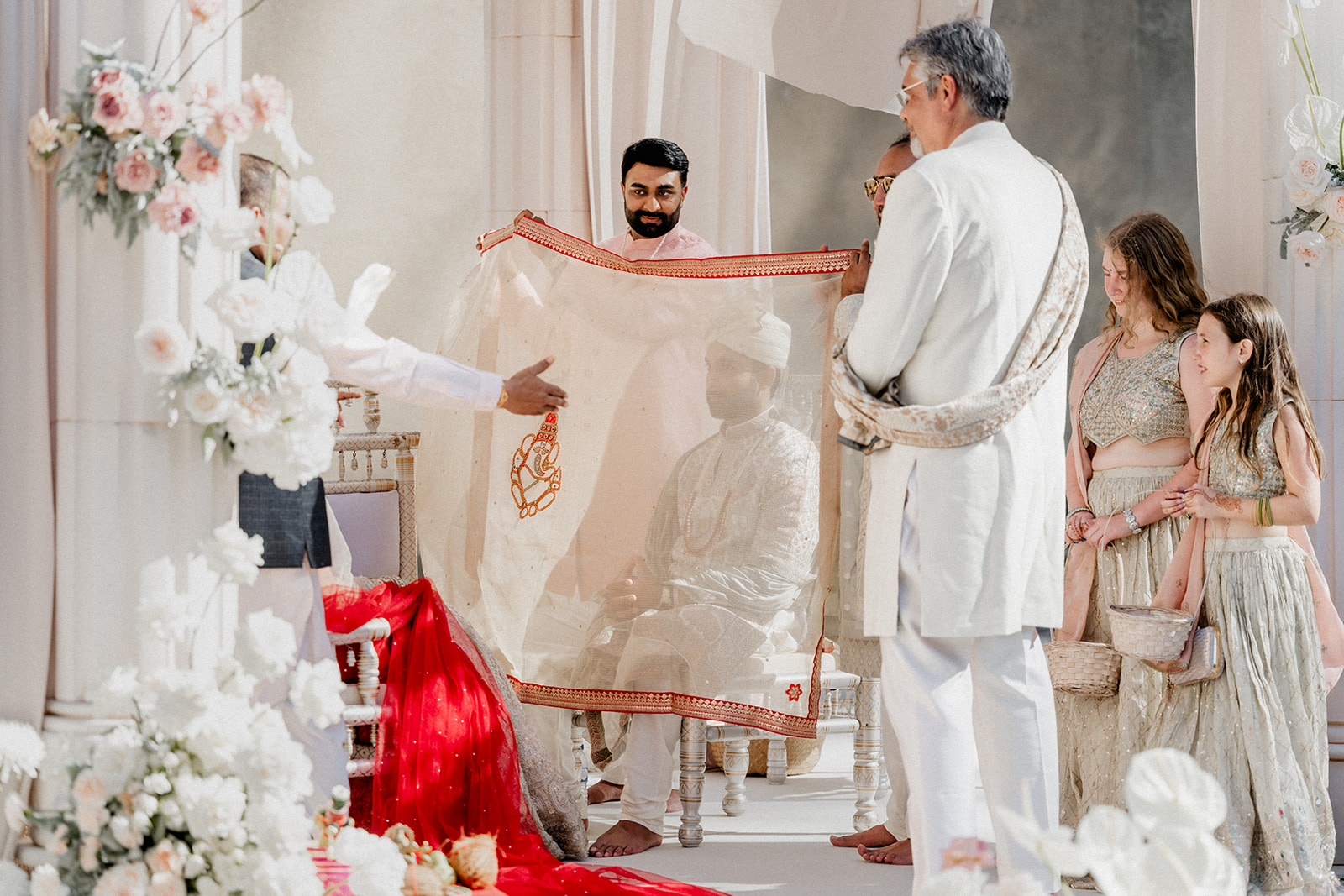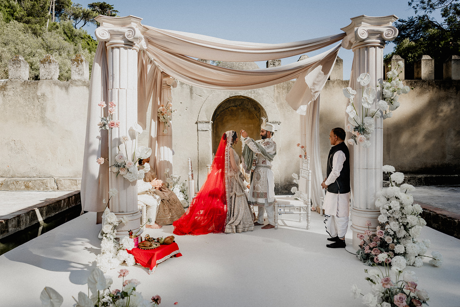 Para a decoração, o casal escolheu optou por uma estética que honrasse tanto o local escolhido para o casamento como as culturais que moldaram a dupla, nomeadamente a tradição indiana. Cada momento simboliza os alicerces familiares que definem a história de Anuj e Petra.