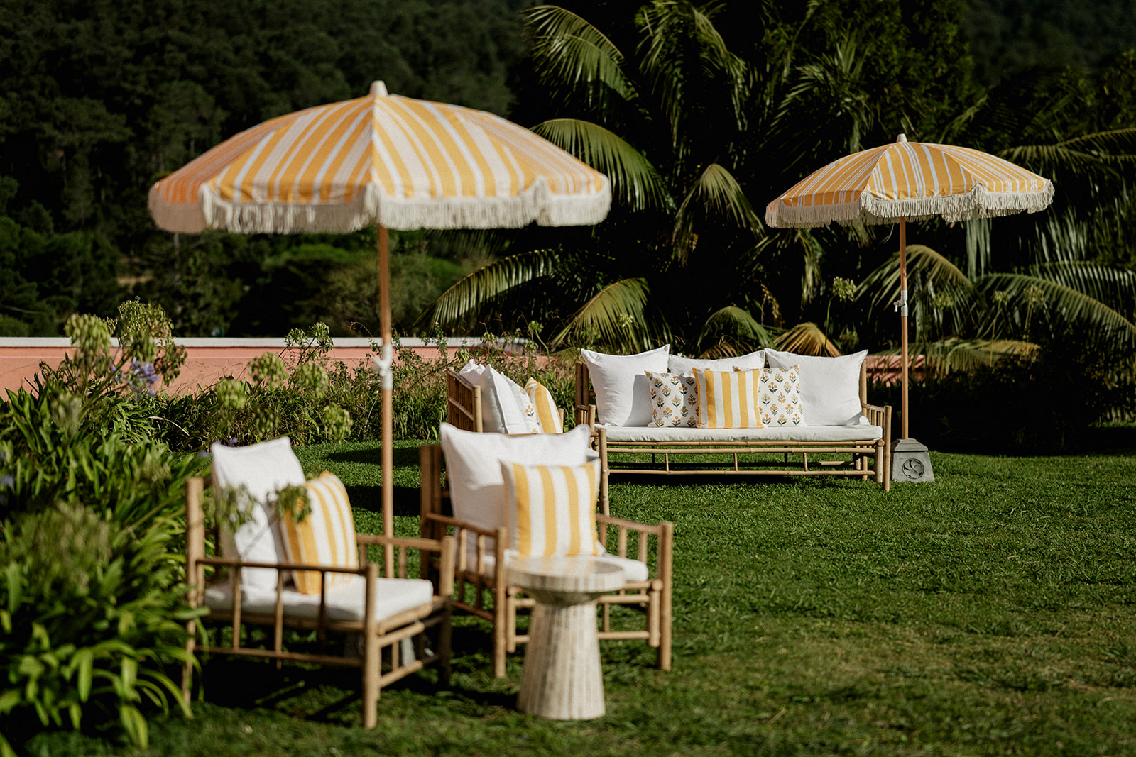 “Quando começámos a planear o nosso casamento, soubemos, sem hesitação, que queríamos celebrar o nosso fim de semana especial algures na Europa,” dizem. O local escolhido foi o Penha Longa Resort, em Sintra. Entre uma viagem gastronómica e uma diversidade de espaços verdes, o espaço permitiu uma transição fluida entre os vários eventos. Já a receção decorreu no Forte da Cruz, um castelo junto à praia, no Estoril.