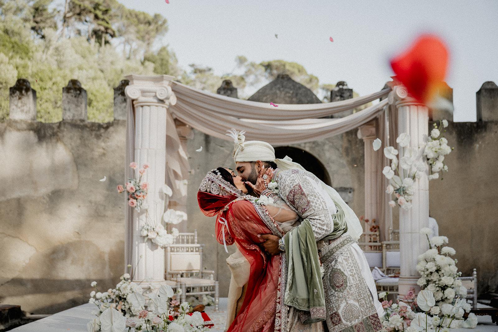 De origens culturais diferentes, essa diversidade tornou-se um dos aspetos mais significativos da sua relação. “Ao longo do caminho, os momentos marcantes — irmos viver juntos, unirmos as nossas famílias e tradições, viajarmos pelo mundo e, por fim, ficarmos noivos — pareceram ainda mais especiais porque refletiam a jornada que estávamos a construir juntos”, afirma o casal. Anuj pediu Petra em casamento em agosto de 2023, num cenário com vista para as rochas Faraglioni em Capri, Itália. Para oficializar o início deste próximo capítulo, o casal escolheu celebrar o seu casamento em Portugal, trazendo o seu amor de volta ao território Europeu.