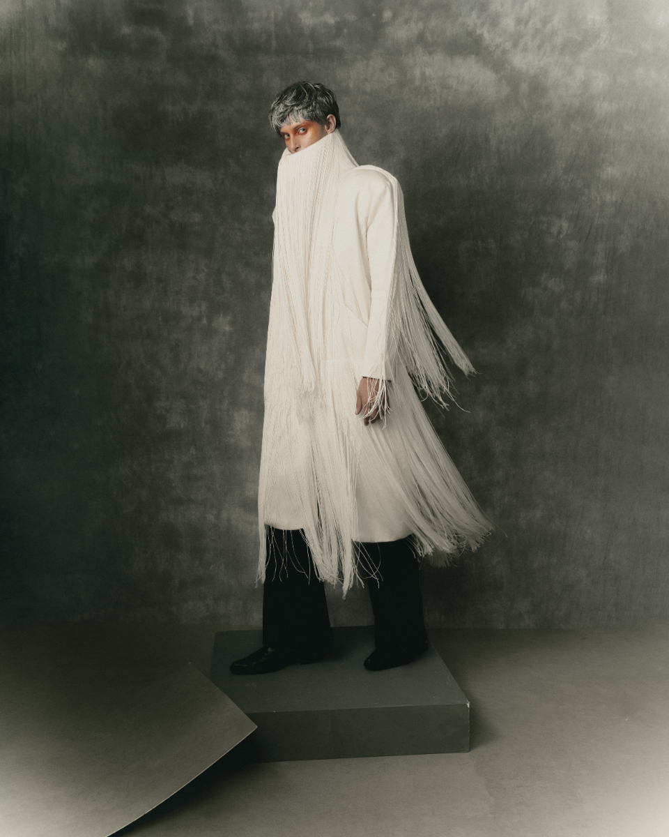 Onde a pele é palco, o tecido é texto e o silêncio se torna visível, a Moda surge num teatro de sombras onde tudo pode ser refeito e nada é concreto. Este editorial nasce desse espaço, e demonstra a respiração e a pausa entre dois atos. Num diálogo entre o artesanal e o moderno, cada look ecoa a visão do passado e a procura do futuro.