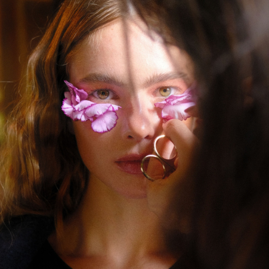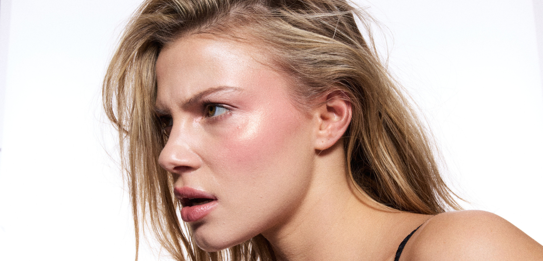 No que toca à pele, tons alperce, pêssego, framboesa, beringela, avermelhados. Todos estes tons que encontramos na mucosa da pele (na parte mais interna do lábio) que remetem ao sangue, a essas cores mais intensas que existem naturalmente dentro da nossa própria paleta de tons de pele. A ideia é potenciar estas cores e levá-las a outras zonas do rosto para criar esse efeito de pele beijada pelo sol, ligeiramente queimada, como se estivesse estado numa esplanada, numa piscina ou na praia durante algum tempo, ganhando aquele tom ligeiramente queimado nas zonas mais elevadas do rosto.