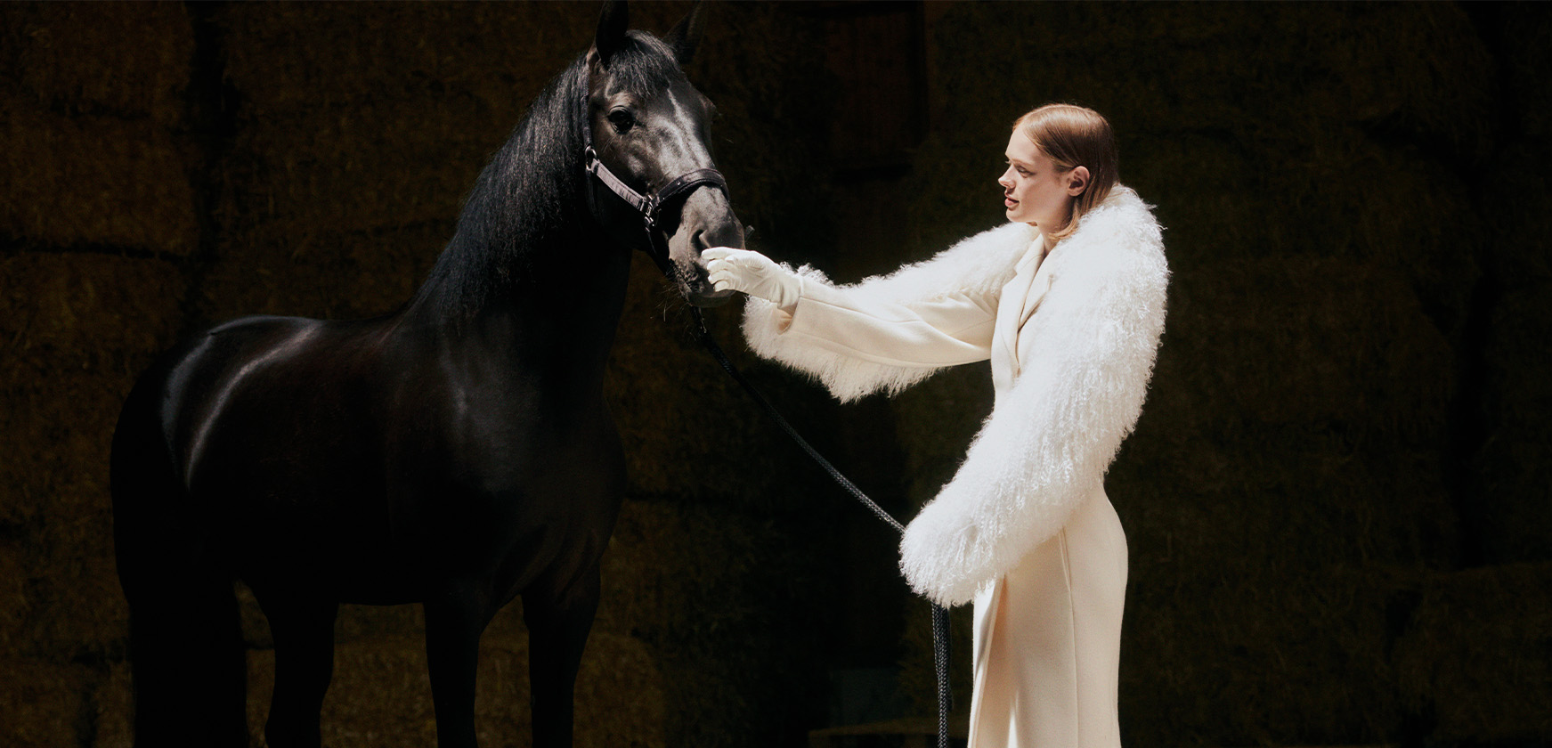 Os cavalos são metáfora perfeita para a dualidade da mulher, uma dicotomia que se traduz até no seu guarda-roupa: texturas felpudas como a crina equestre juntam-se à nobreza lisa da lã, tão suave como o pelo de um potro, para looks de inverno que veiculam a imponência destas criaturas e a sua elegância em igual medida. Em visuais que estão longe do imaginário de cowboy, mas que não destoam de uma vivência em comum com estes animais que exalam serenidade — a maioria das vezes, tal como nós —, as páginas que se seguem não foram feitas para cavalgar, mas antes para admirar com tempo, em passo lento.