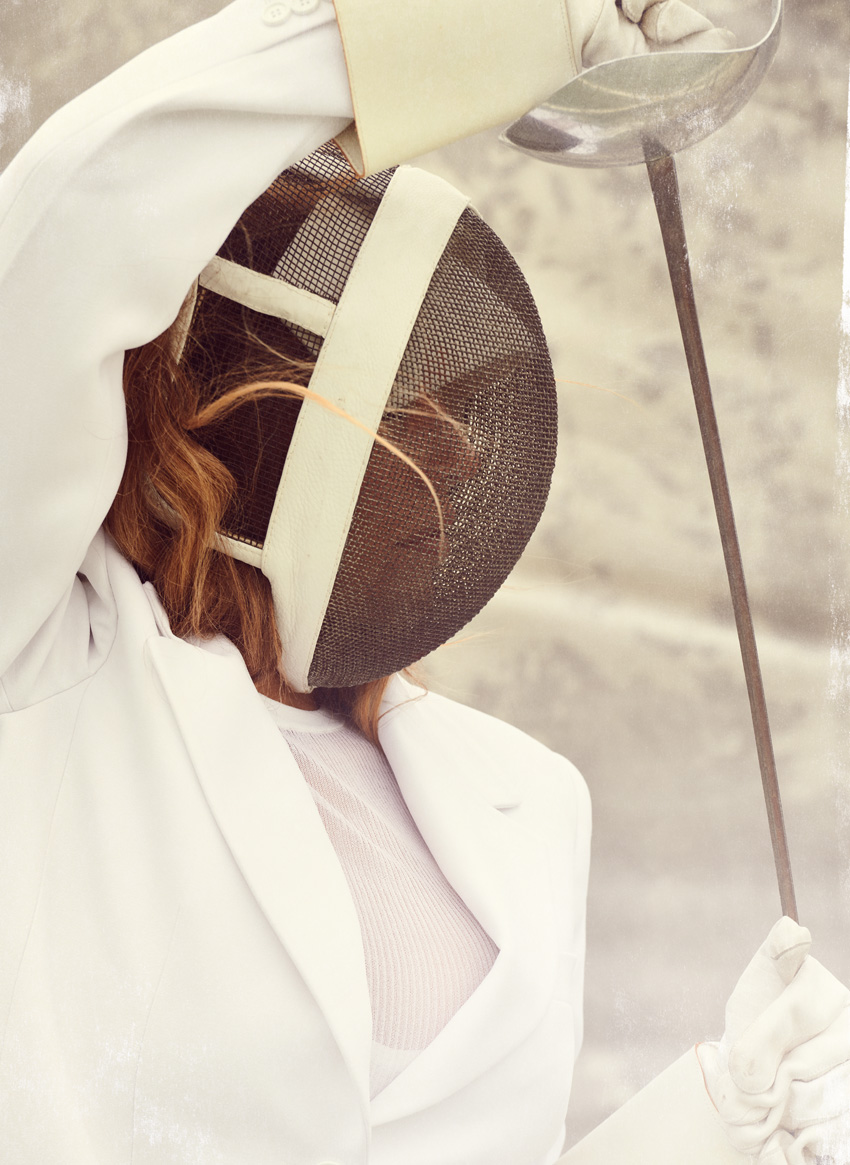 Blazer e top, MICHAEL KORS. Luvas, máscara e espada, tudo KOSTUEME BREUER.