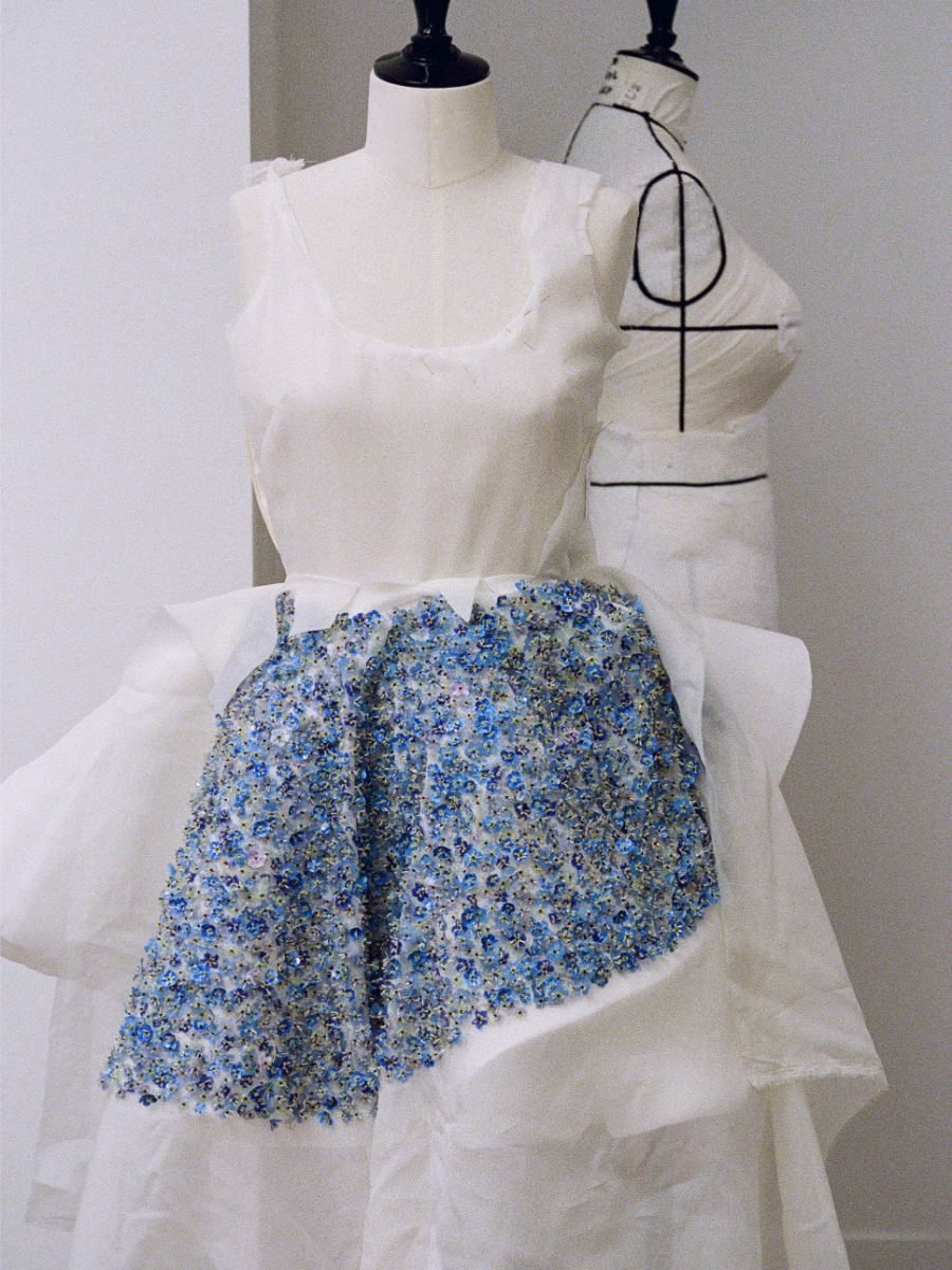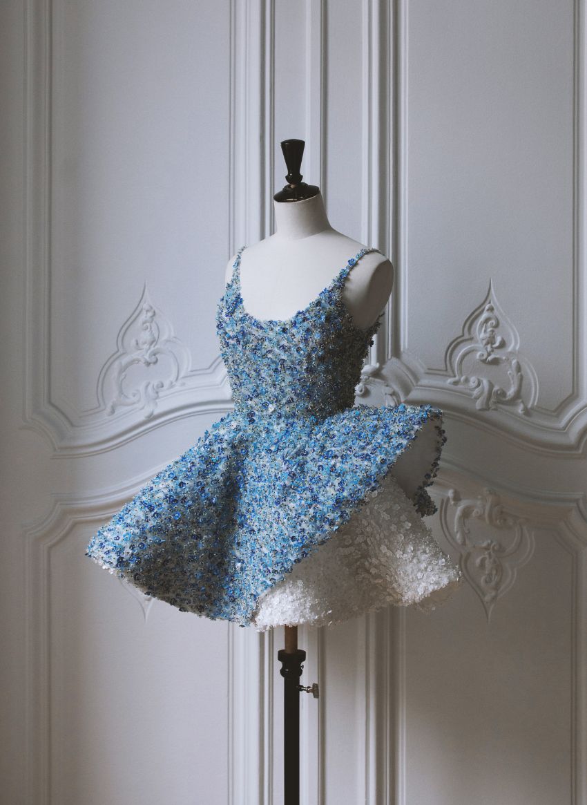 Mia Goth, um dos nomes que encara o elenco da adaptação de Guillermo del Toro da mítica história de Frankenstein, optou por um vestido de cetim volumoso tingido a azul. O look, que dá palco também à alta-joalharia da Dior, honra a criatividade (e genialidade artística) de Anderson através de nós e laços que mantêm a silhueta simples e etérea, sem nunca perder o auge de ousadia. Por sua vez, Natalie Portman usou um vestido curto em organza e bordados florais que celebram os séculos de história e savoir-faire da maison francesa – e também as mãos artesanais que lhe dão vida.