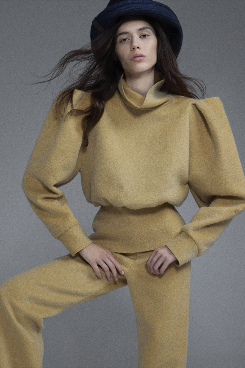 Numa paleta em tons térreos com pequenas nuances de cores suaves, a simplicidade assume o controlo e torna-se um modo de vida. O estado de espírito esbate-se entre as silhuetas esculturais e as formas geométricas profundas sem silhuetas marcadas. Em contraste, o fundo cinzento ténue funde-se com as peças e com a monotonia do dia a dia.