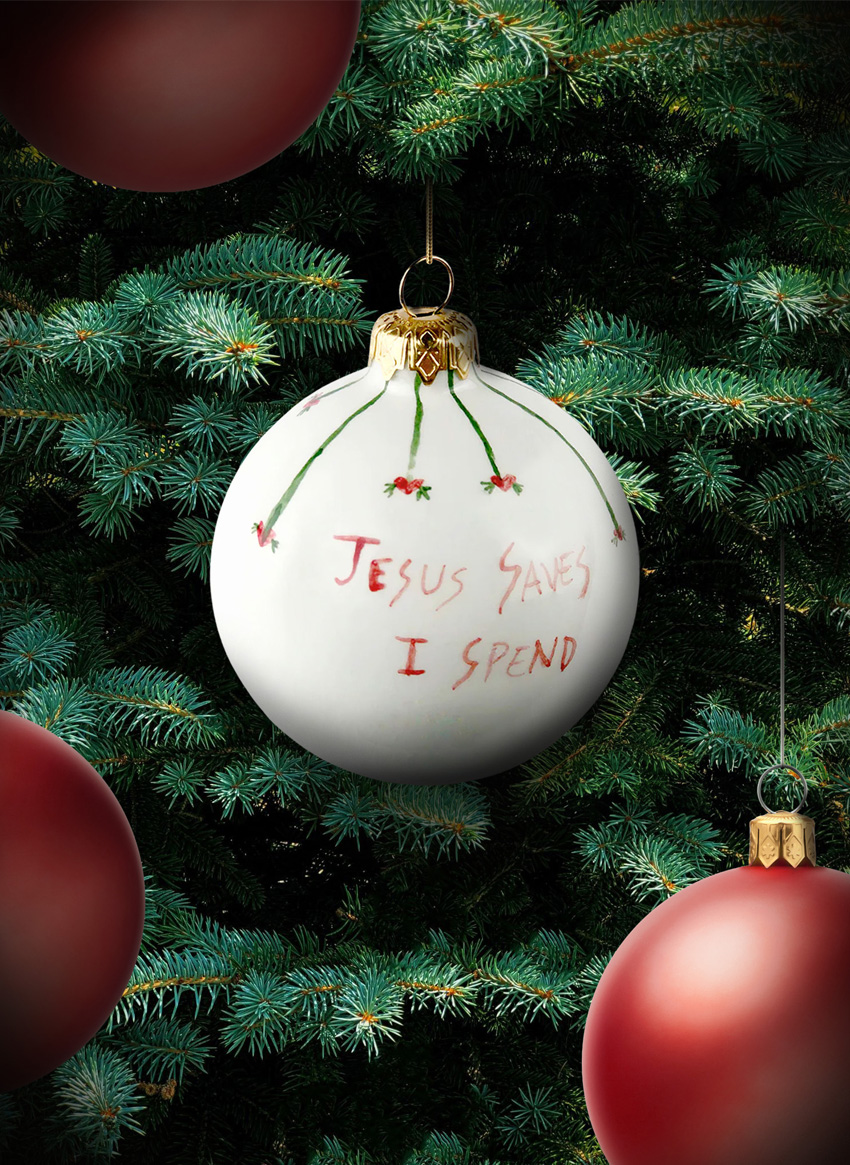 Enfeite de Natal Jesus Saves / Spend, € 42, Musae Studio, em Musaestudio.com.