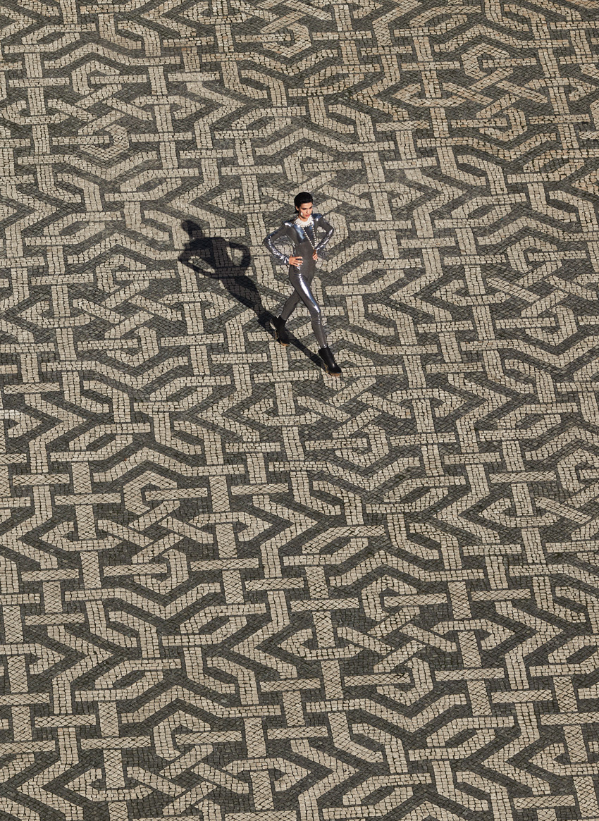 Na terra da calçada portuguesa, símbolo nacional de charme e património, andar de saltos altos é mais do que caminhar. É um exercício de resistência estética. Uma dança silenciosa entre o sublime e o possível. Uma espécie de desfile em terreno acidentado, onde o glamour se mede tanto pela altura do salto como pela capacidade de se manter de pé. Na geometria hipnótica das pedras pretas e brancas escondem-se buracos temporais capazes de engolir um Christian Louboutin em segundos. É o tipo de terreno onde a estética vence a funcionalidade — e a mulher moderna, vestida de atitude, tem de fazer o seu próprio GPS emocional para não se perder no caos cuidadosamente calcetado.