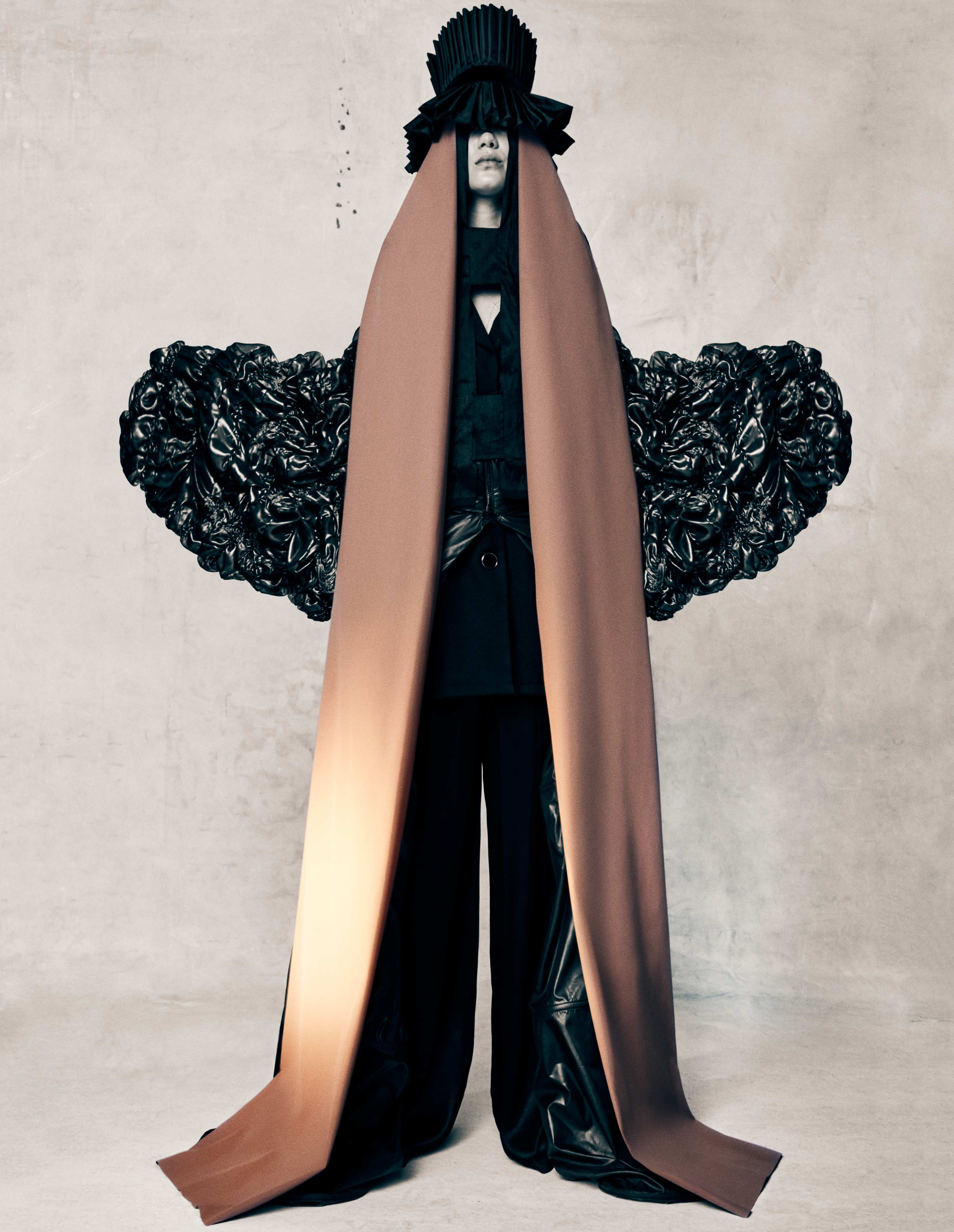 Harumi: capa, camisola e saias, tudo Sonia Pinto. Botas, Lucas Regall.
