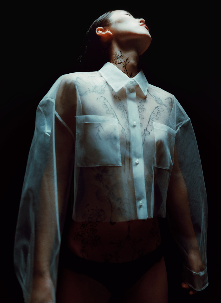 Para alguns a arte está na música, em espectáculos, teatros ou nos livros. Para outros, a arte está no poder de contar histórias através de desenhos, seja em papel ou na pele humana. A sensação de marcar a pele com imagens que oferecem recordações para uma vida é viciante tanto para quem as desenha como para quem as imortaliza no corpo. A inspiração nasce onde e quando menos se espera, seja num monumento de cristal ou numa paisagem botânica subaquática, como nos conta Luna Ikuta, a artista que foi simultaneamente a musa e a artista deste editorial. Quando a tinta preta, temporária ou permanente, se difunde pela pele, torna tudo o que há em nós parte dela também.