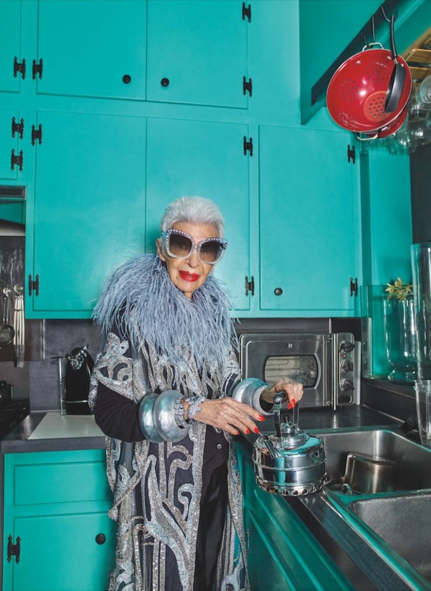 Mas acreditava em Carl, isso sim. Mr. Apfel morreu aos 100 anos, em 2015, mas até aí mantinham uma paixão tão carinhosa que era de fazer inveja a qualquer casal de adolescentes, a bem dizer, a qualquer ser humano. “My beautiful child”, dizia ele quando Iris entrava na sala.” “How are you pussycat?” foi sempre a resposta dela, enquanto lhe passava a mão pelo rosto. O amor, diz-nos Iris, “dá uma sensação de estabilidade, de ser desejada, de ser apreciada, e acho que precisas disso se queres ter uma vida feliz”. E foi assim que Apfel construiu o seu nome na elite dos designers de interiores nova-iorquinos, desbravando caminho com os colares que tilintam quando anda e com a sua personalidade que tilinta ainda mais ensurdecedoramente.