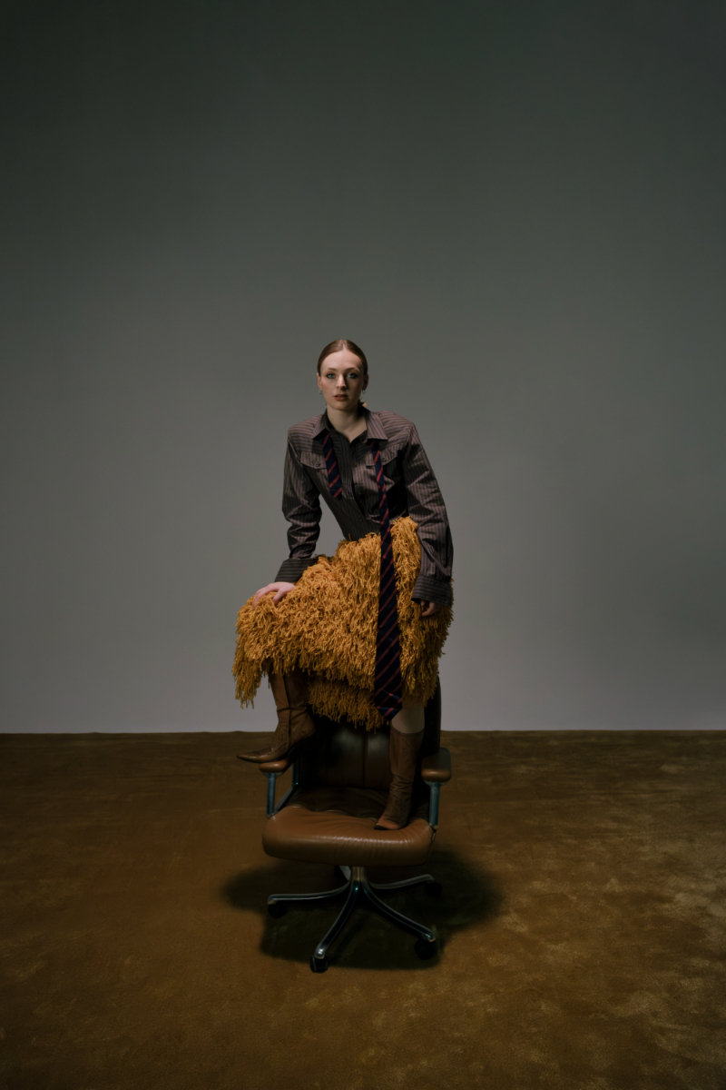 Laura: vestido, ÈRI SIX. Camisa, DONNA KARAN. Camisola, MASSIMO DUTTI. Gravata vintage, VALENTINO. Calças, FACE TO FACE. Lucia: blazer e saia, FACE TO FACE. Camisola, GALLO. Polo, vintage da produção. Brincos, ÈRI SIX. Lucia: camisola, DONNA KARAN. Saia, FACE TO FACE. Calças, ÈRI SIX. Headpiece, da produção. Sapatos, Steve Madden. Laura: casaco, FACE TO FACE. Meias e sapatos, da produção.