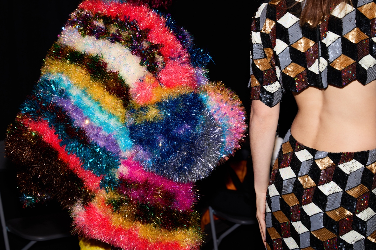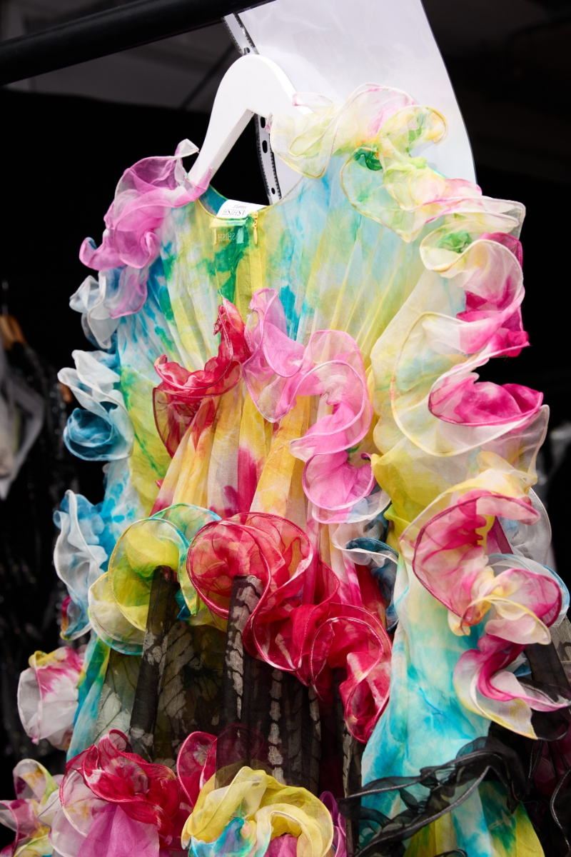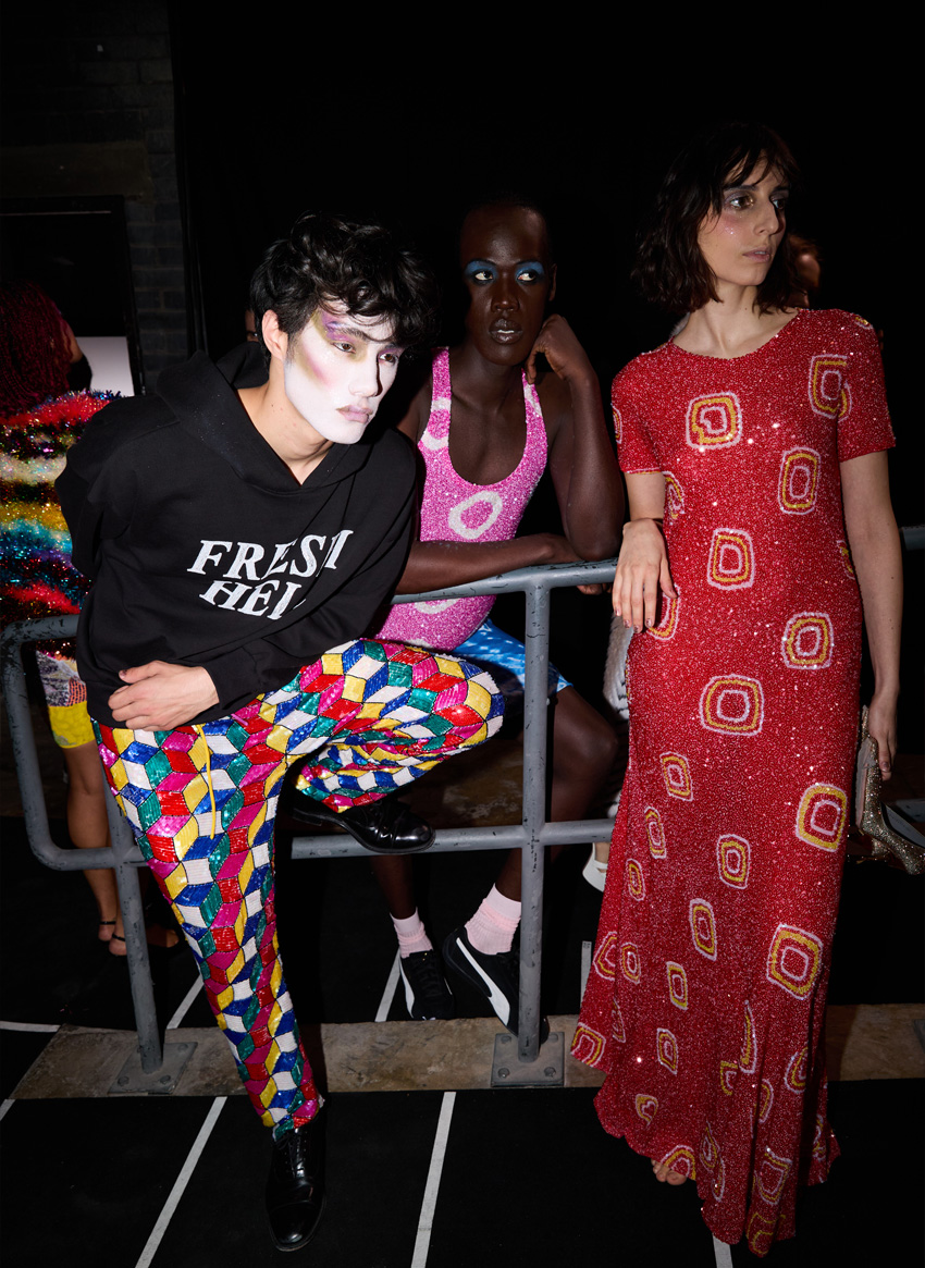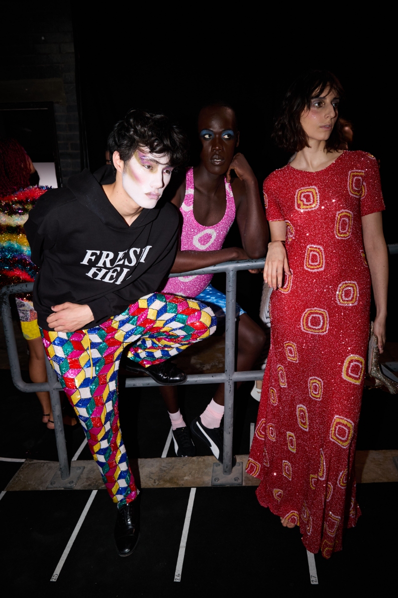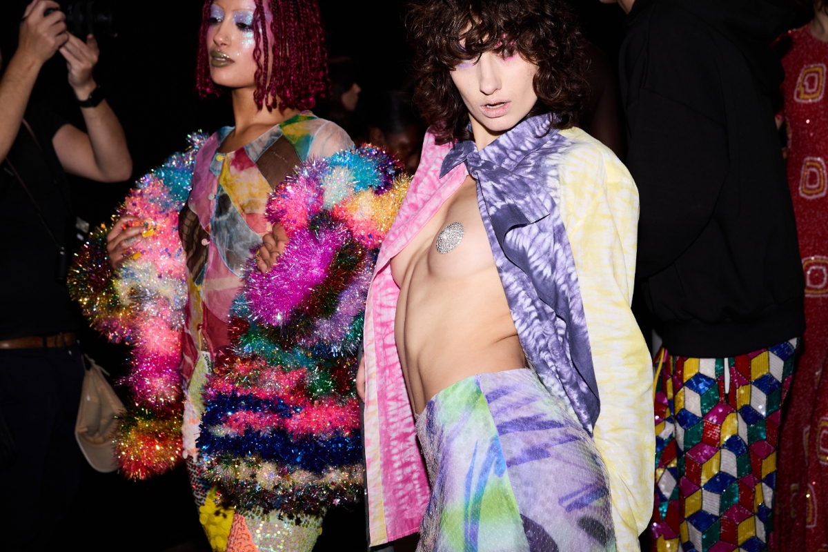 A nova coleção da Ashish para a primavera/verão 2026 surge num misto de cor e texturas. Isabelle Hardy captou os momentos que antecederam o desfile.