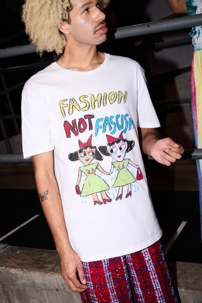 Para a próxima estação quente, as propostas da Ashish surgem em parceria com a artista Linder Sterling. Intitulada Fresh Hell, a coleção celebra a evolução de Ashish Gupta ao longo do tempo, através de peças que brilham em materiais já há muito reconhecidos aos códigos da marca. Uma resposta à divisão social que se faz sentir ao redor do mundo, o desfile uniu o vestuário à arte da performance e viu os modelos a dançar livremente pela passerelle – numa ode atmosférica à cultura underground da club scene britânica.