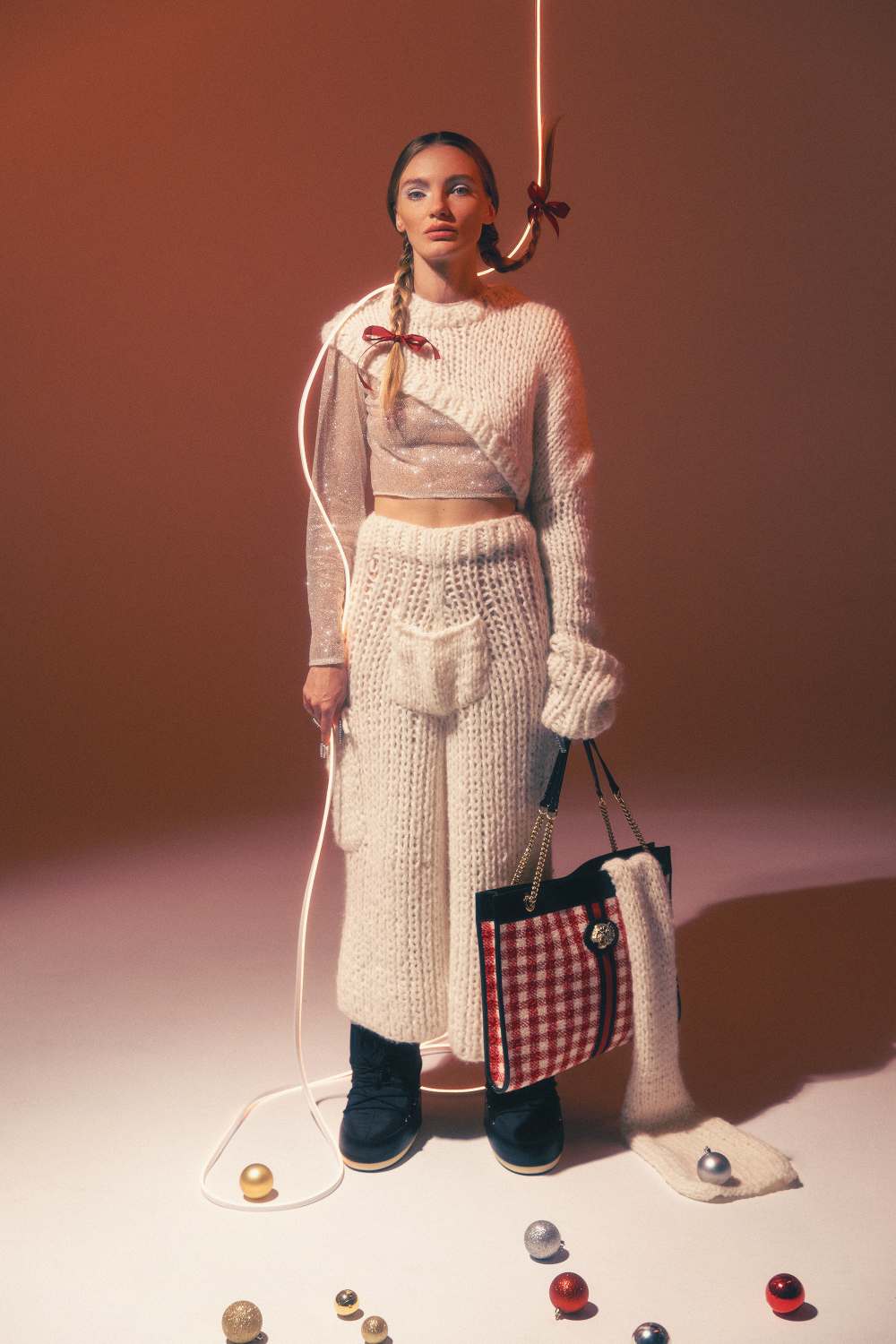 Camisola e calças, ambas ANA GIMENEZ. Top, ANGEL MARCO. Carteira, GUCCI, em @THE_BAG_SOCIETY. Botas, MOON BOOTS.
