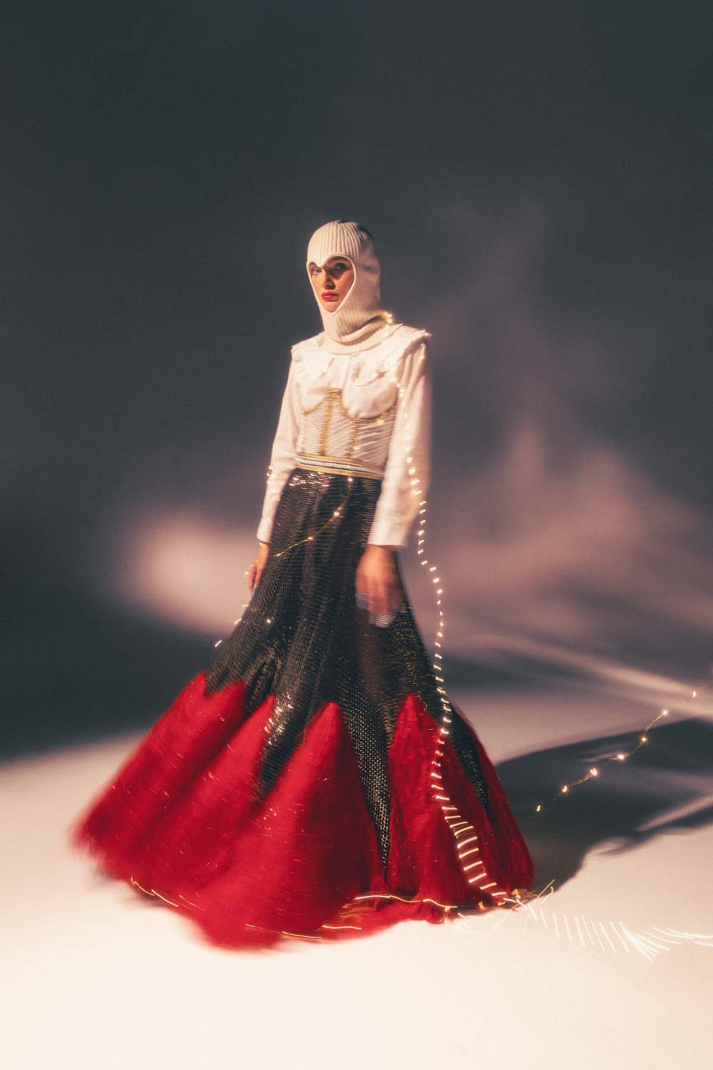 Camisa, GANNI. Saia, RUBEN ARRANZ. Balaclava, LOEWE.