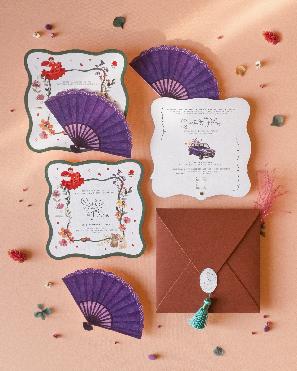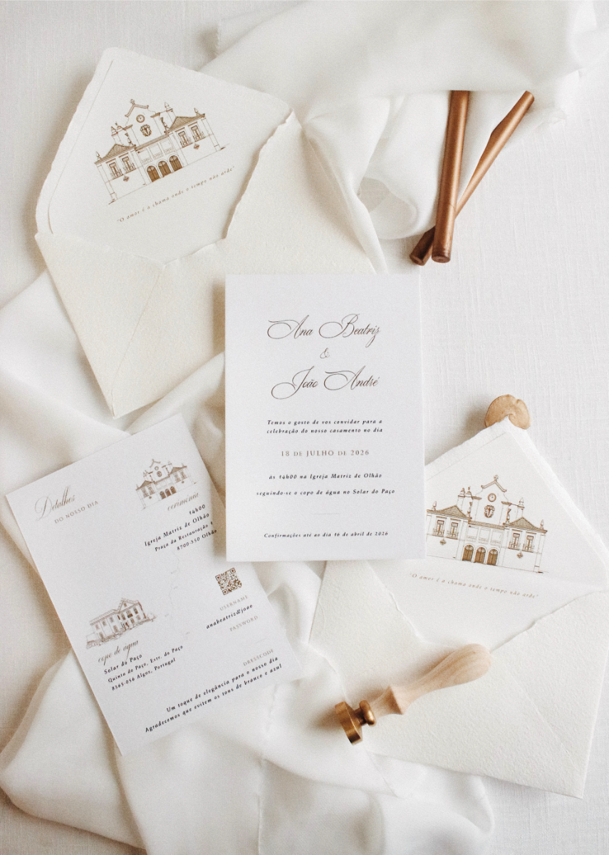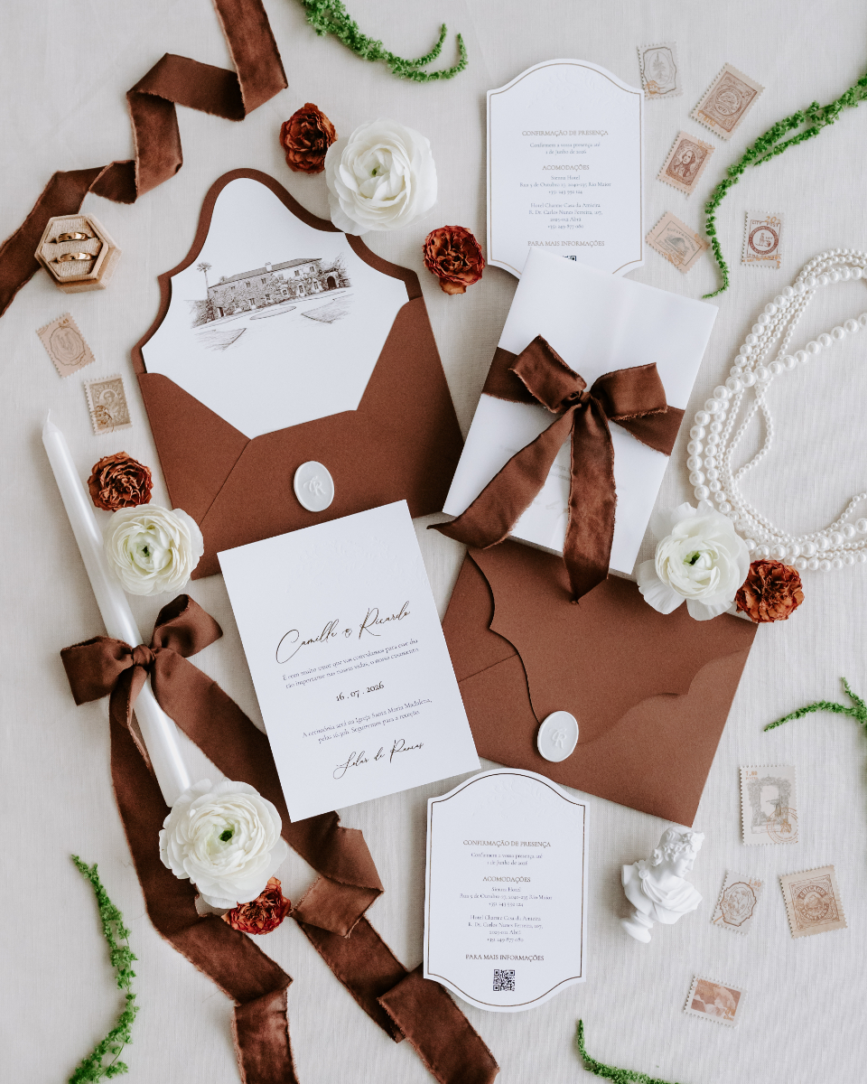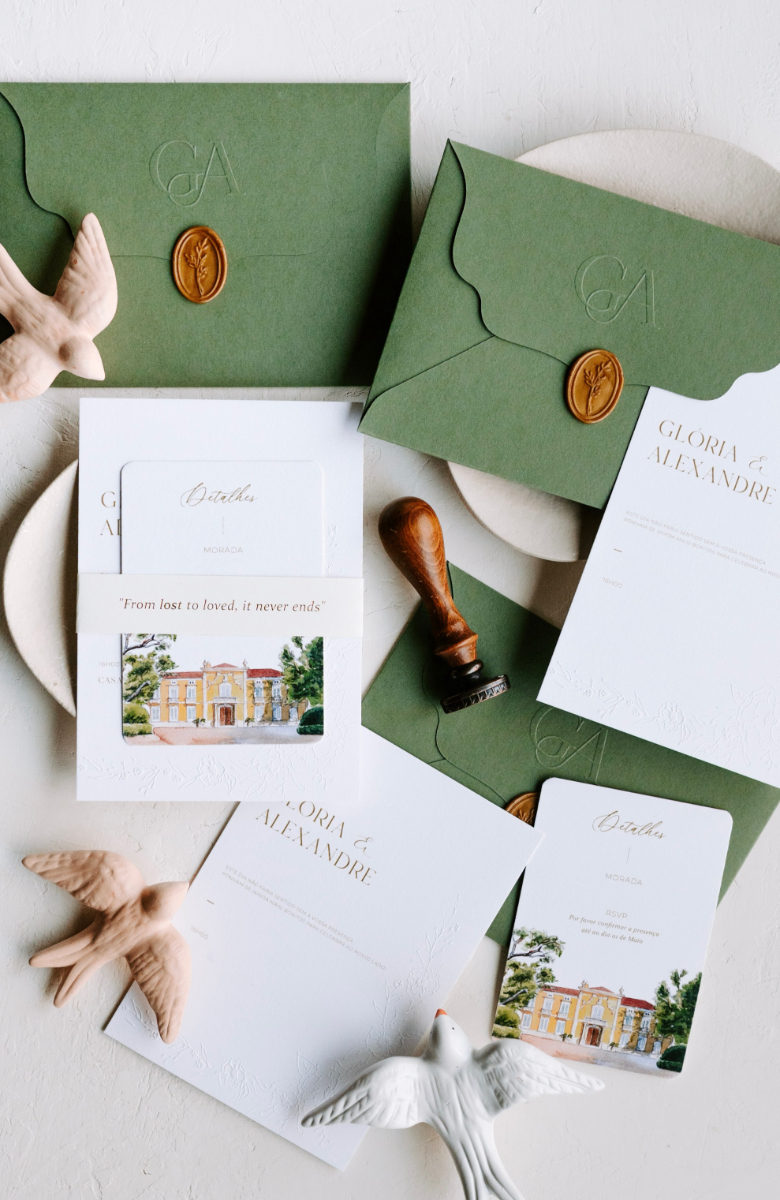 Com uma abordagem que privilegia convites totalmente personalizados, pensados para refletir a essência de cada casal, o Ds-Atelier de Design trata cada projeto de forma única, acompanhando todas as etapas do processo com cuidado e atenção. Ao combinar design autoral com tipografia cuidada, ilustração e acabamentos de excelência, cada peça é singular — desenhada para que os noivos se sintam verdadeiramente representados. Mais informações em www.instagram.com/ds_atelier_design e +351 917 422 863.