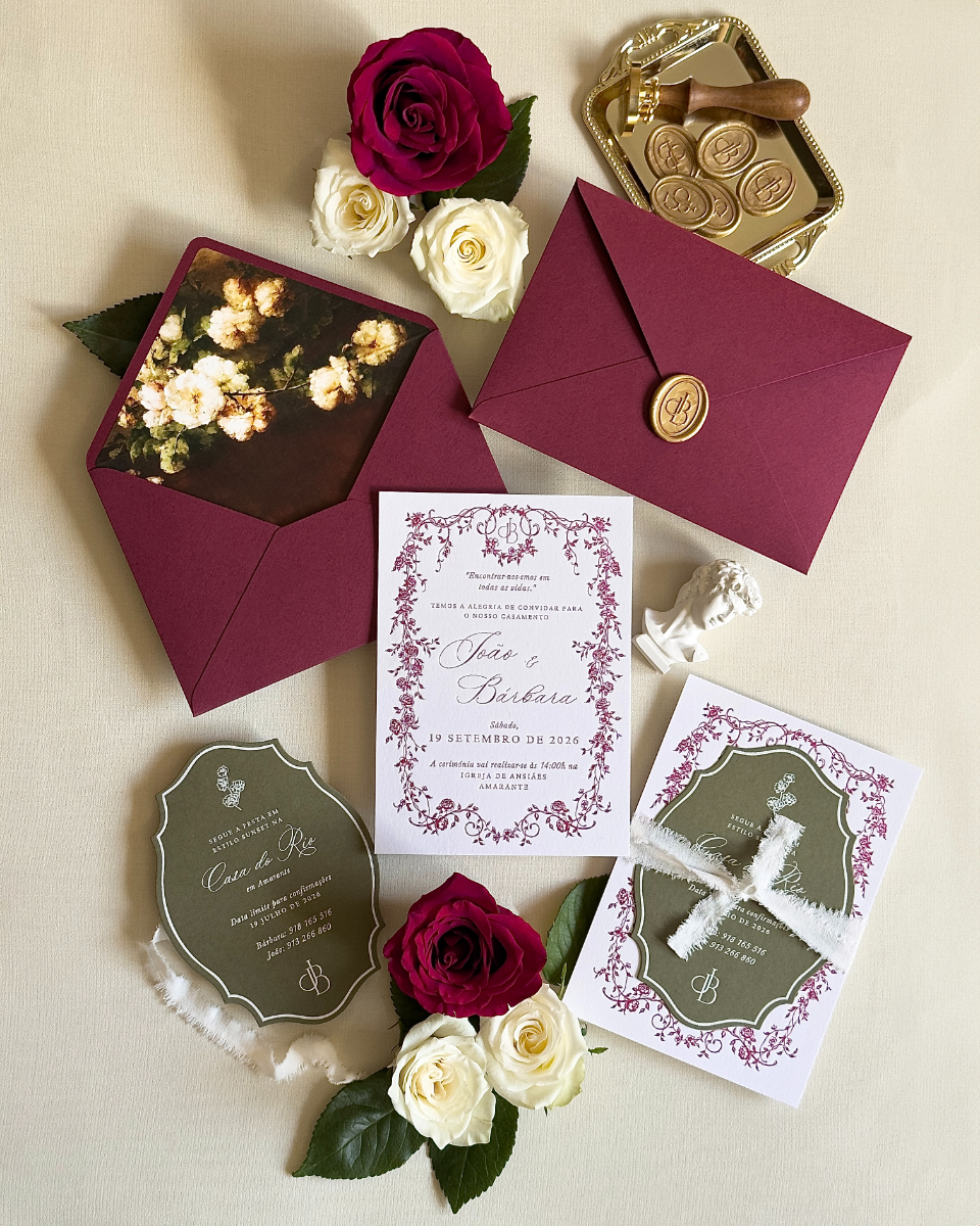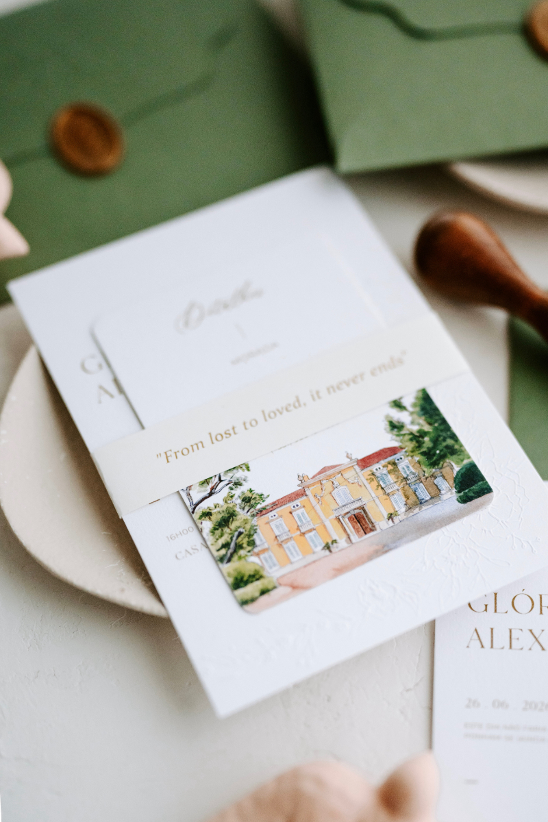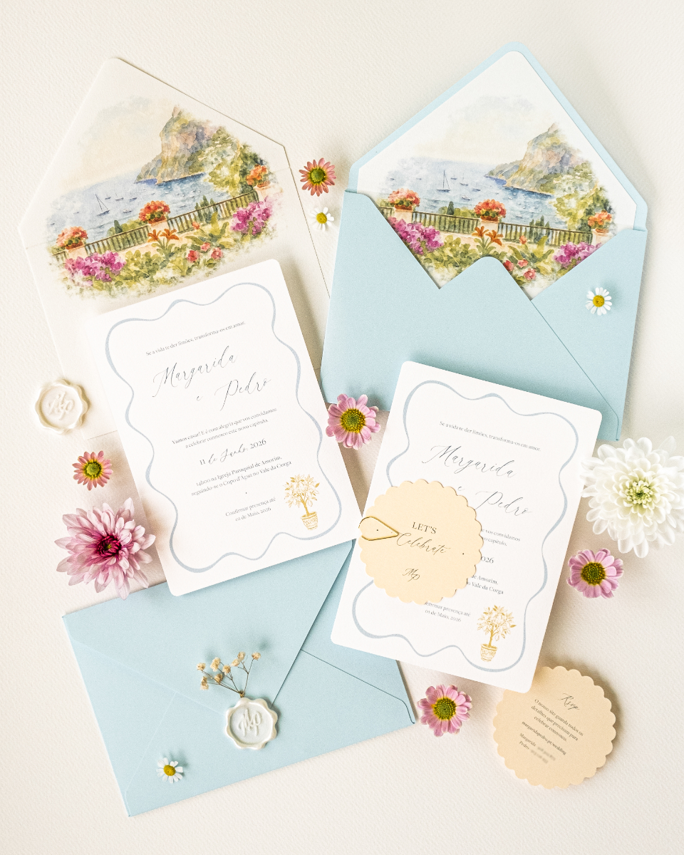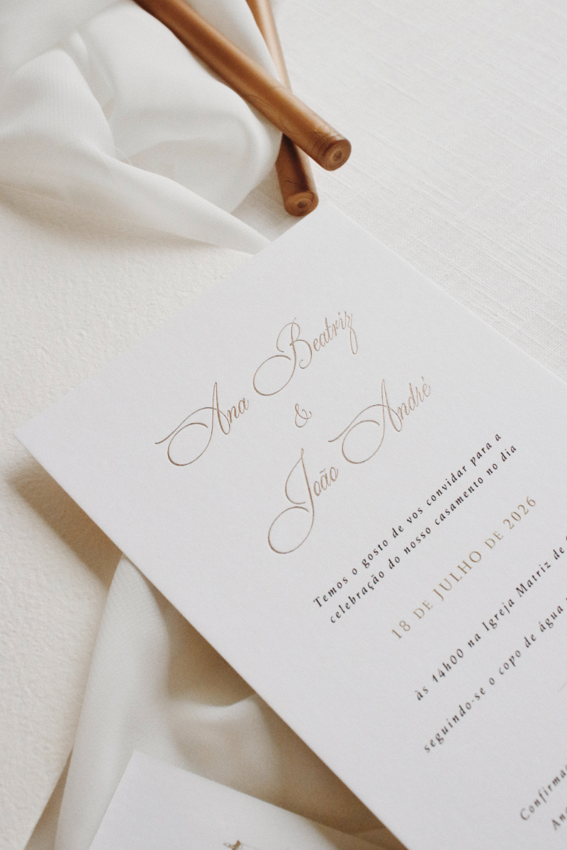 Com uma abordagem que privilegia convites totalmente personalizados, pensados para refletir a essência de cada casal, o Ds-Atelier de Design trata cada projeto de forma única, acompanhando todas as etapas do processo com cuidado e atenção. Ao combinar design autoral com tipografia cuidada, ilustração e acabamentos de excelência, cada peça é singular — desenhada para que os noivos se sintam verdadeiramente representados. Mais informações em www.instagram.com/ds_atelier_design e +351 917 422 863.