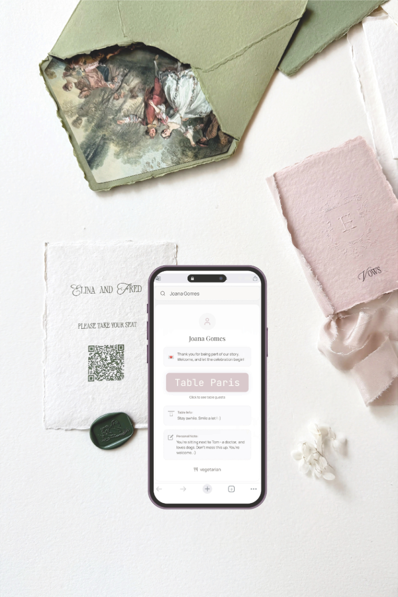 Num equilíbrio distintivo entre o ritmo das prensas centenárias e a poesia serena do papel de algodão artesanal, o Neroli Atelier cria estacionário que cruza tradição e inovação. O mais recente seating chart digital transforma um elemento funcional num gesto de conexão emocional: mensagens personalizadas, exclusivamente para cada convidado, criam momentos de surpresa íntima e um calor humano genuíno. Não é apenas orientação — é acolhimento. Mais informações em www.instagram.com/neroli.lisboa e +351 936 685 462.