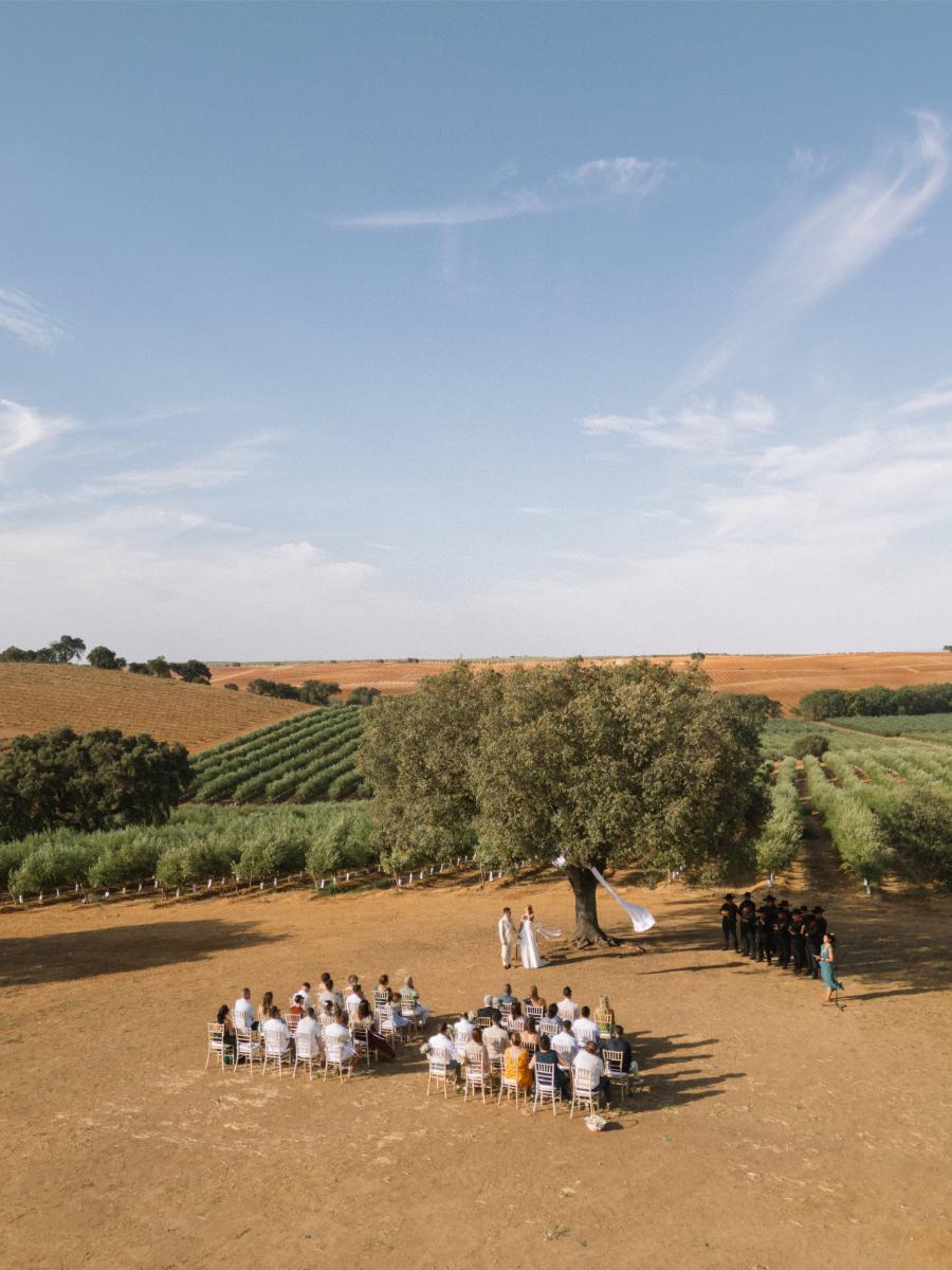 Com uma paisagem que evoca o silêncio do campo e faz ansiar pela paz de um céu estrelado, a herdade do Monte do Ramalho promete traduzir os detalhes de qualquer história de amor através de um cenário inesquecível e uma gastronomia que honra a natureza. Aqui, encontramos um sobreiro centenário, catering próprio e alojamento até 40 pessoas, e é possível sonhar com cocktails ao som de música ao vivo, bebidas frescas junto à piscina ou um jantar ao ar livre com luzes de arraial — e tornar esse sonho realidade. Mais informações em www.montedoramalho.com e +351 932 035 471.