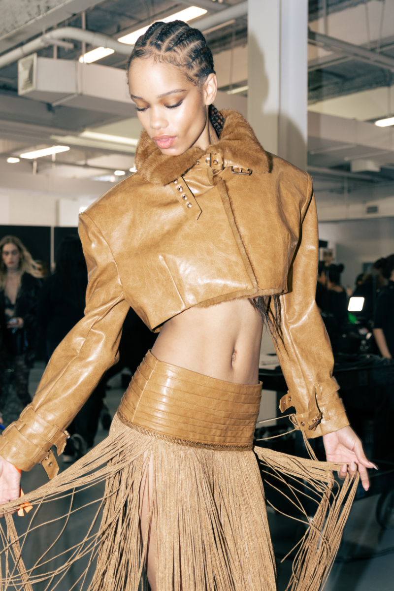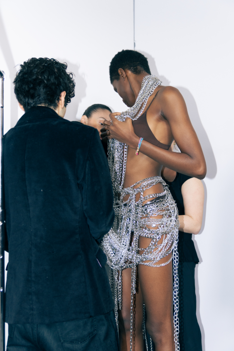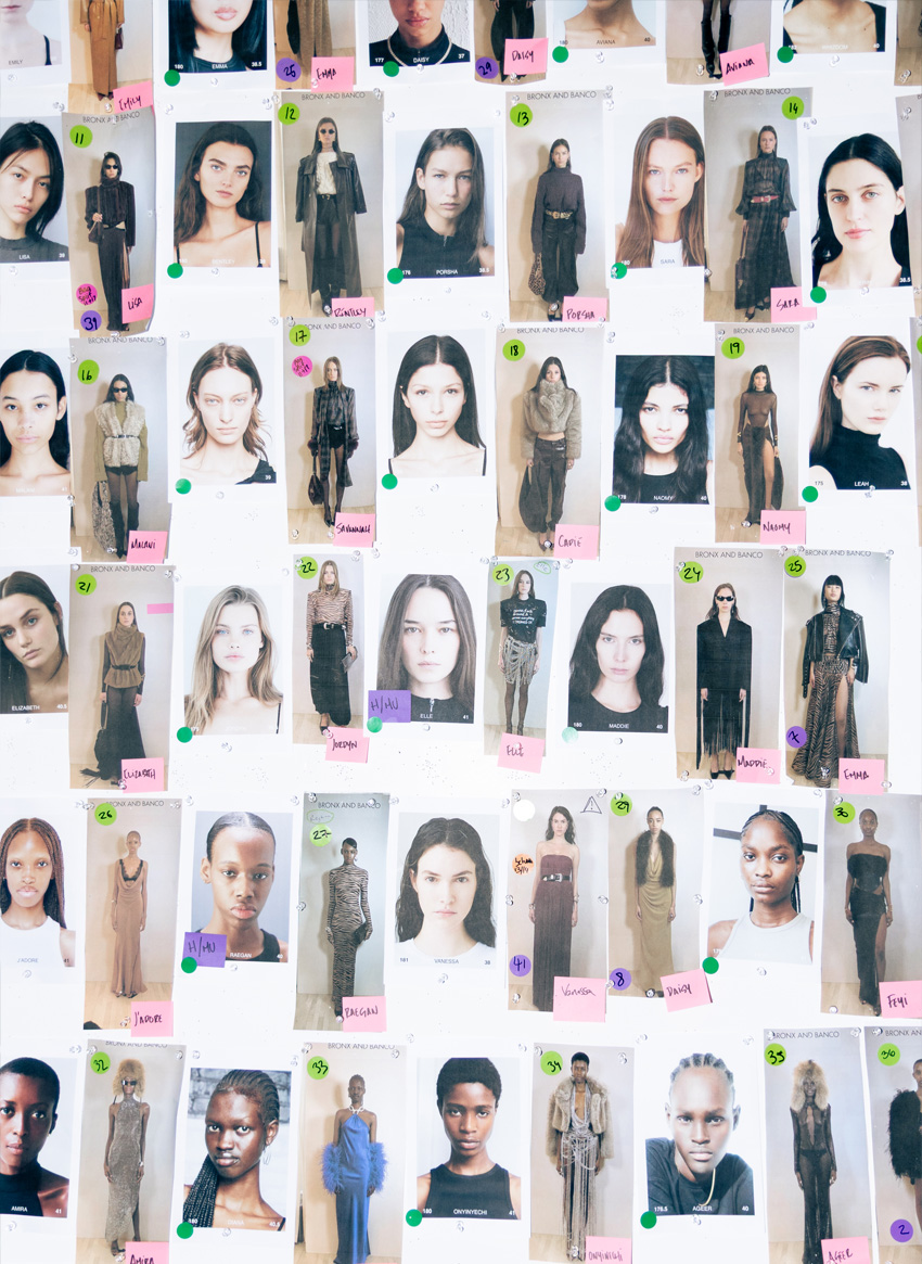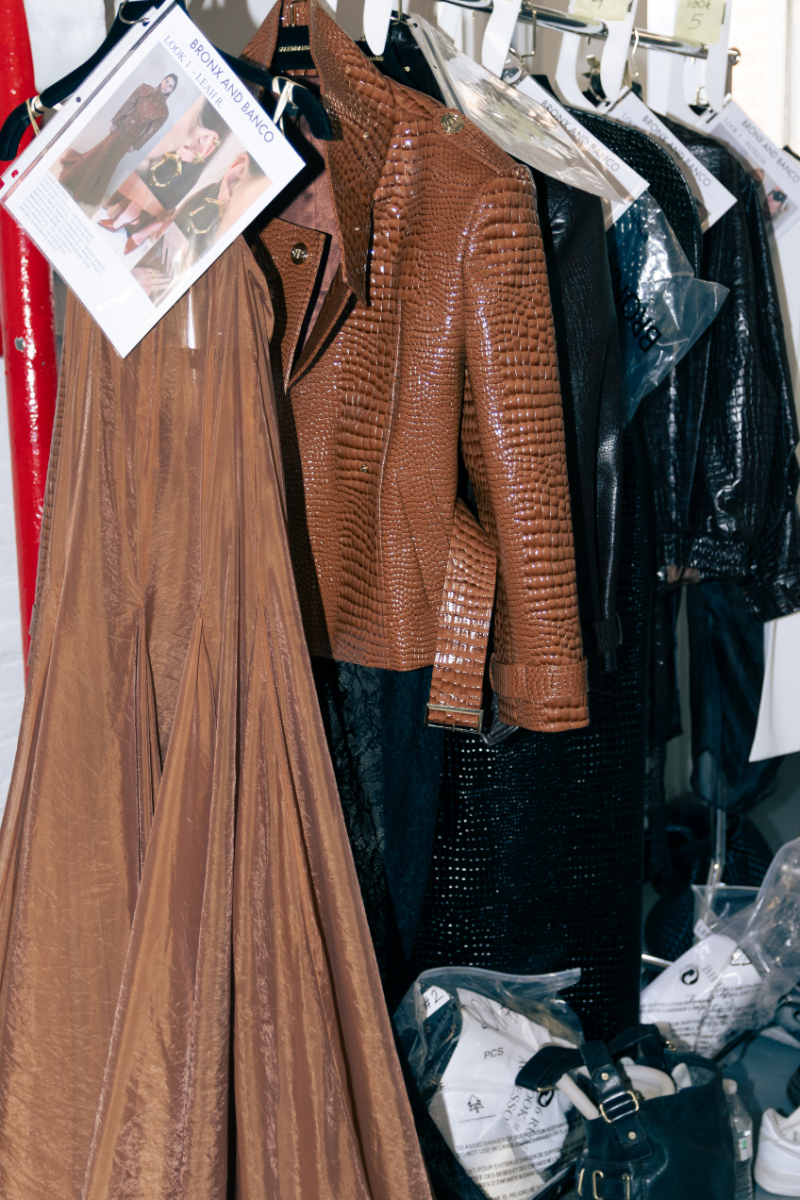 Sob a direção criativa da designer Natalie De’Banco, a coleção de outono/inverno 2026 da Bronx and Banco une o futuro à nostalgia futurista dos anos 90 e 2000, e olha para musas como Madonna e Kate Moss como pontos de referência. Entre propostas que transitam pelo o grunge sombrio e pelo espírito vanguardista dos noughties, surgem silhuetas em pele com detalhes em renda, malhas transparentes e exemplares em organza – sempre tingidos numa paleta de Pantones tão ambiciosa quanto ousada. Nos bastidores, a lente de Dasha Semyonova captou os momentos que antecederam o desfile.
