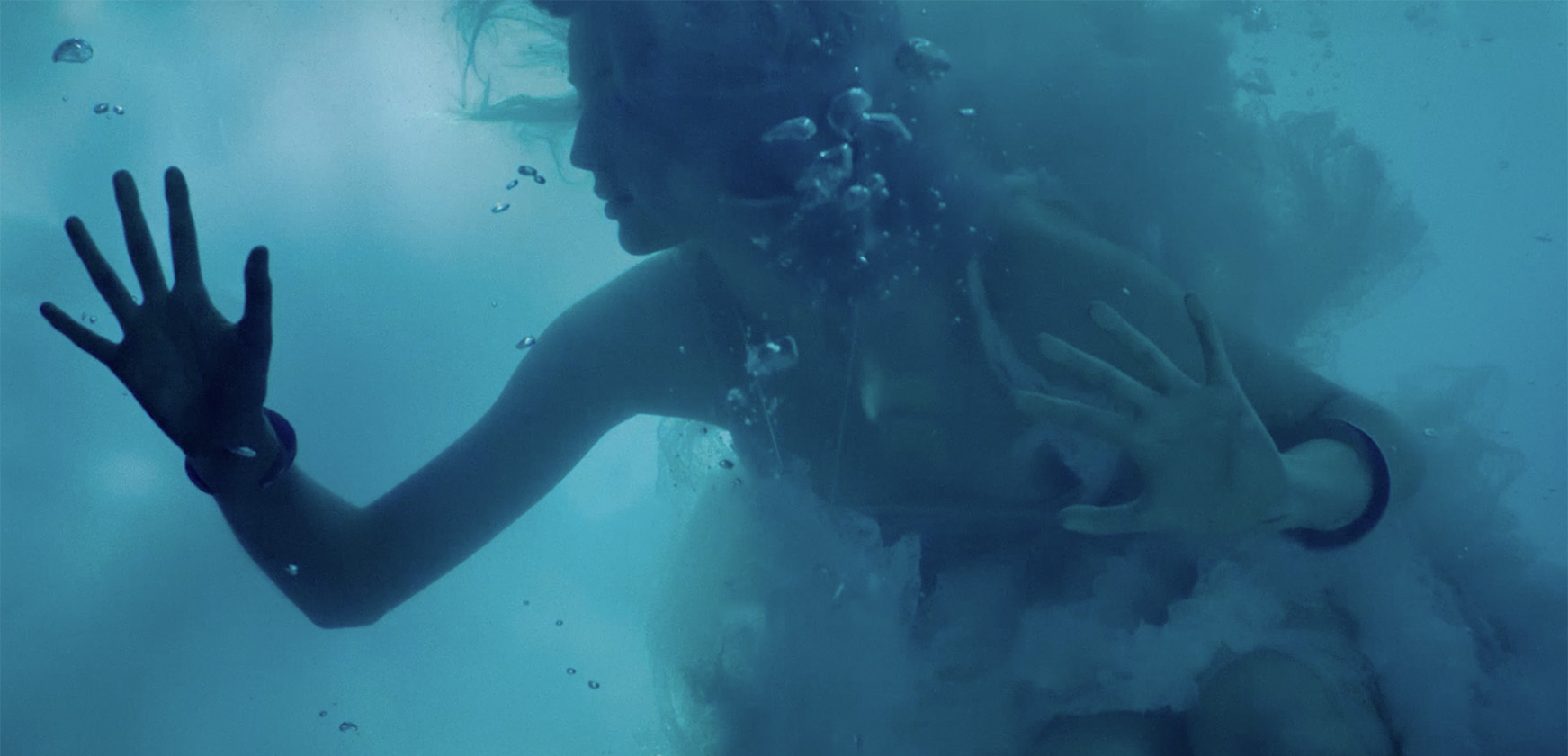 O mar serve de inspiração para este editorial de beleza que vai ao fundo do oceano para ir buscar referências que inspiram e respiram em terra firme. Os mil tons azuis, do mais negro submerso à clareza cintilante da superfície, as texturas aquosas e os detalhes como pérolas e conchas fazem desta protagonista uma sereia que se move entre o solo e a água, o belo e o desconhecido, o mergulho e o regresso à tona. Nesta paixão pelo azul salgado que nos apela, faz-se da maquilhagem e dos cabelos uma ode a este amor de água fresca.