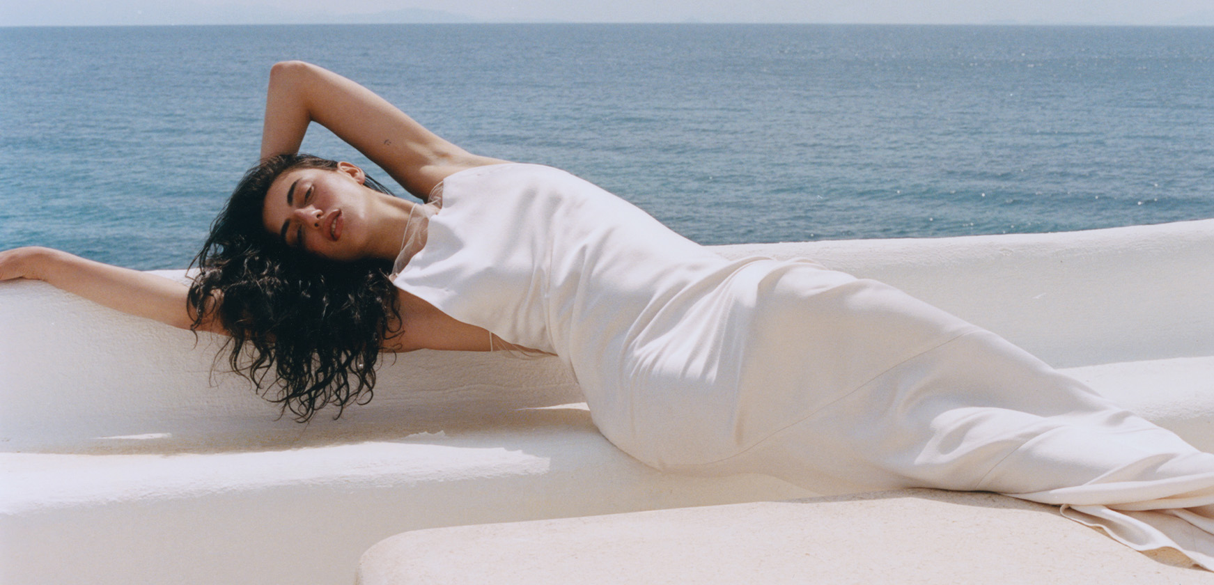 O livro de Hans Christian Andersen, de 1837, pode ter a origem dinamarquesa do seu autor, mas estas paisagens gregas assentam na perfeição na heroína das páginas seguintes. Erguendo-se do mar como peixe na água, mas desfilando em terra firme como uma princesa mediterrânica, o oceano surge na fotografia como cenário, mas é casa para a nossa protagonista. E não só: o seu azul profundo suplanta a bidimensionalidade do papel para fazer valer o cheiro a maresia, a frescura da sua temperatura na pele aquecida pelo sol, o salgado no paladar que sabe não só a férias, mas a equilíbrio. No fundo, nessa imensidão, nessa profundidade, somos todas sereias, metade solo, metade sal.