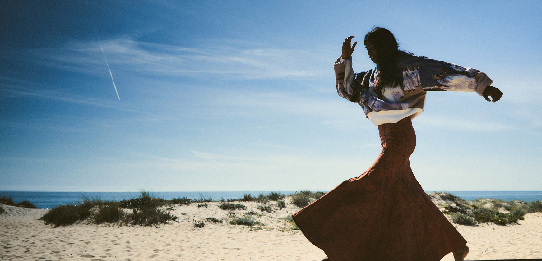 Casaco, saia, meias e sapatos, tudo BEHÉN; casaco e saia, BEHÉN; casaco, saia e chinelos, CONSTANÇA ENTRUDO. Top, PINKO.